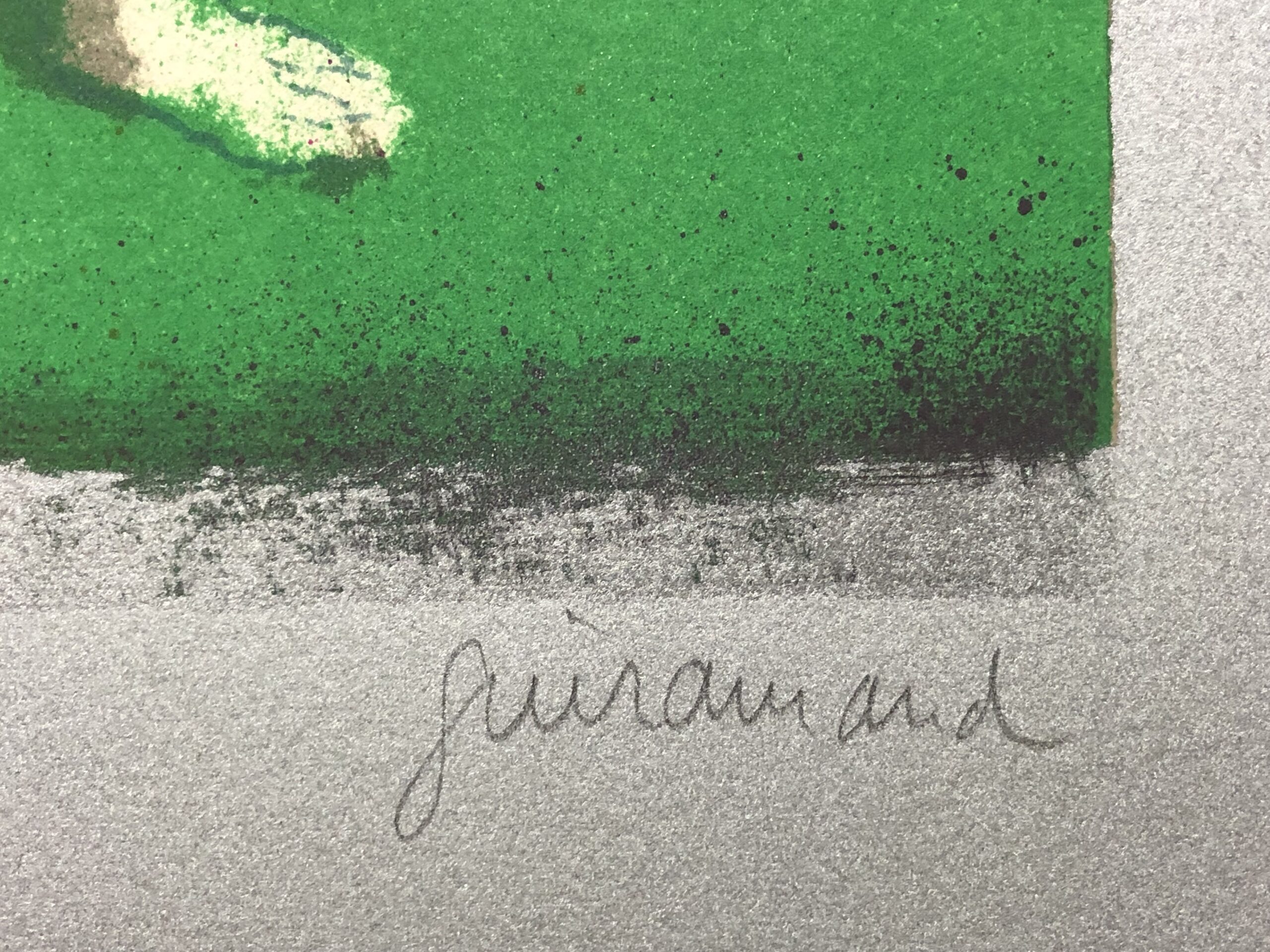 In 1954 he began a series of lithographs at the Atelier of Fernand Mourlot under the council of Charles Sorlier. Mourlot’s Atelier was a popular gathering place for such noted artists of the epoch: Miro, Chagall, Estève, Rebeyrolle, Manessier, Cueco, and Cottavoz. Many of these artists became Guiramand’s life long friends.