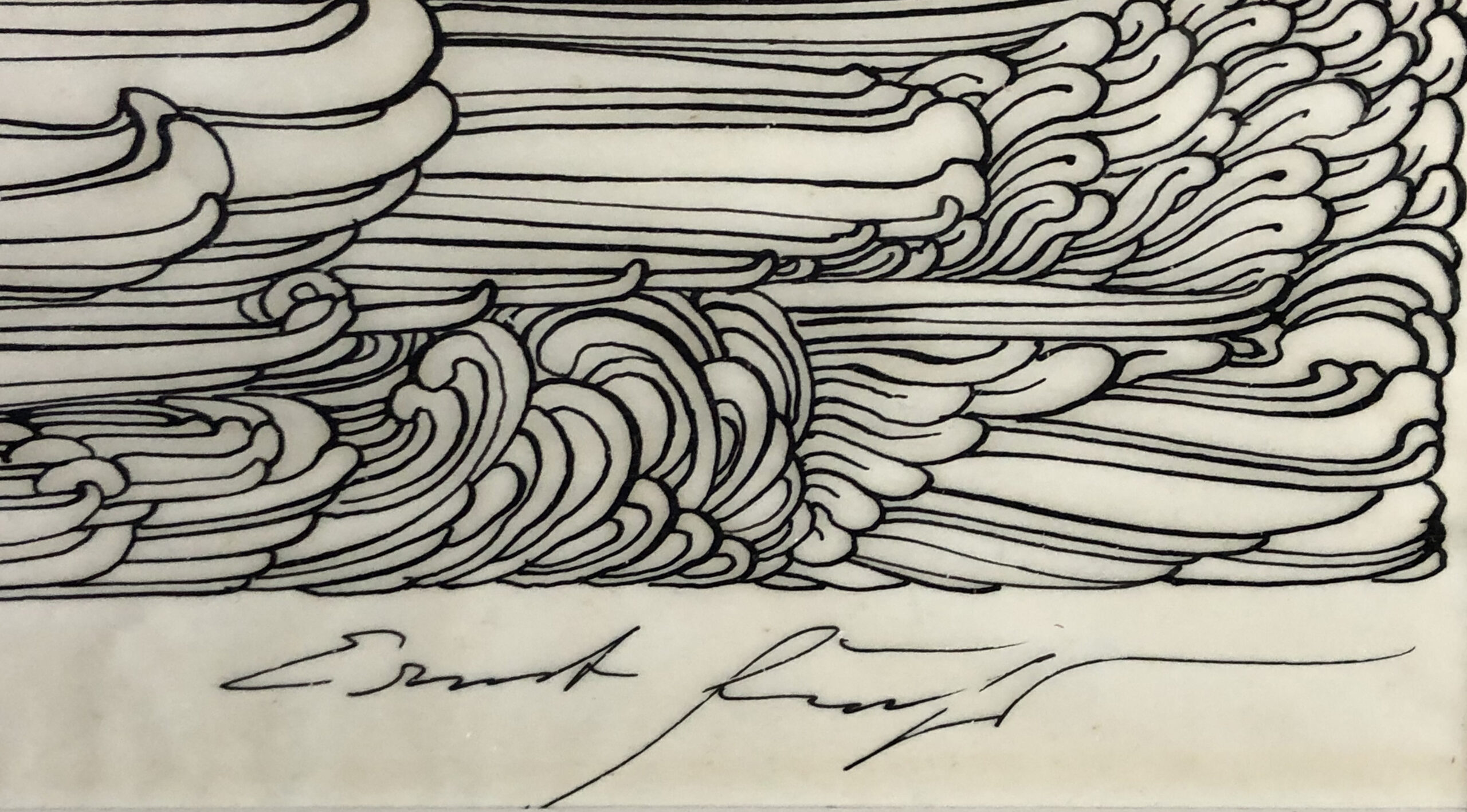 Etching, signed in pencil, printed on antique, fine-grained, cream laid paper. Rare. Fine condition, paper tape remnants at upper corners. Free shipping to US address.