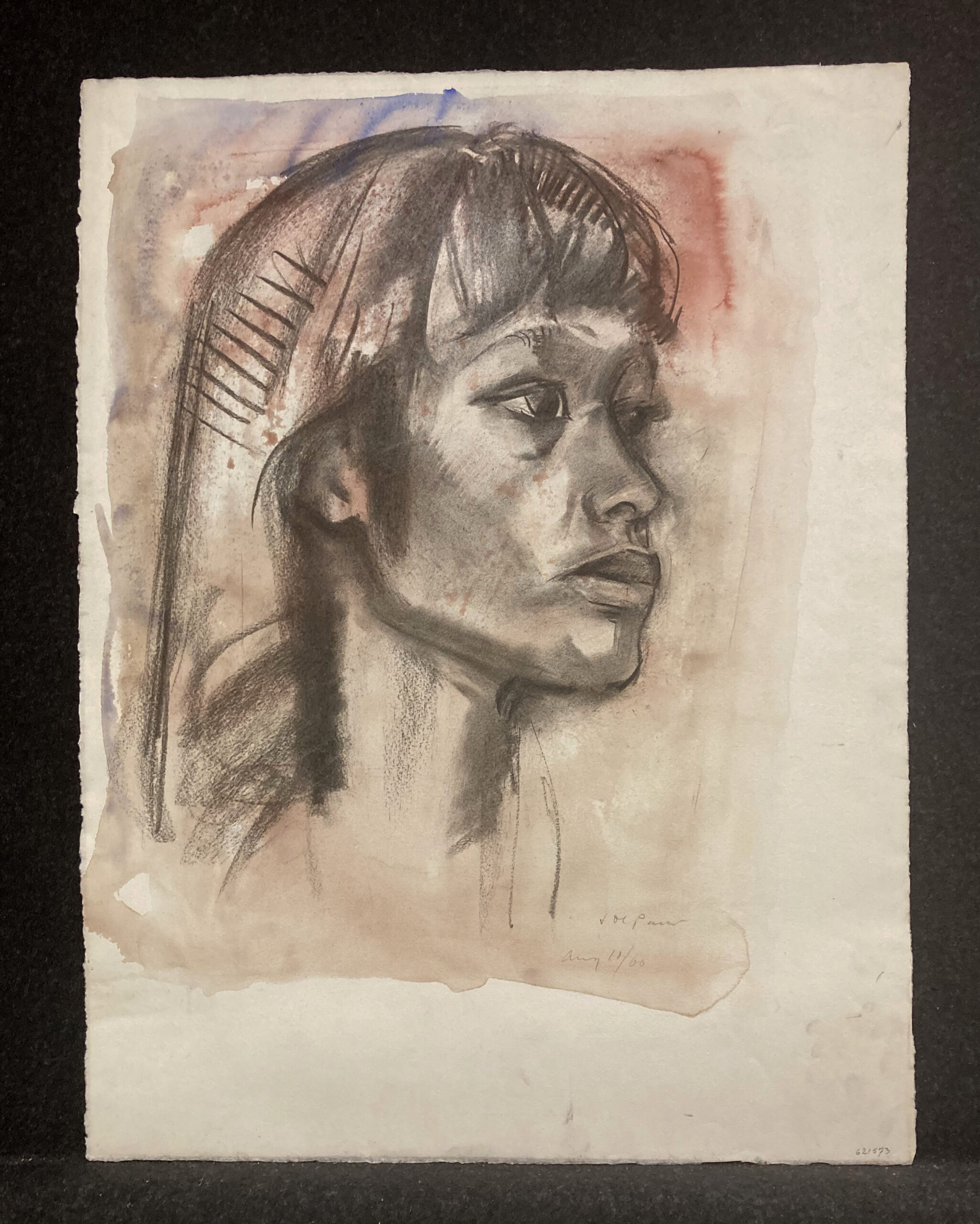 Pastel and watercolor on wove paper, signed in pencil and dated “Aug 10 / 60” at lower right, executed on felt-finish, cream wove paper. Fine condition. Free shipping to US address.
