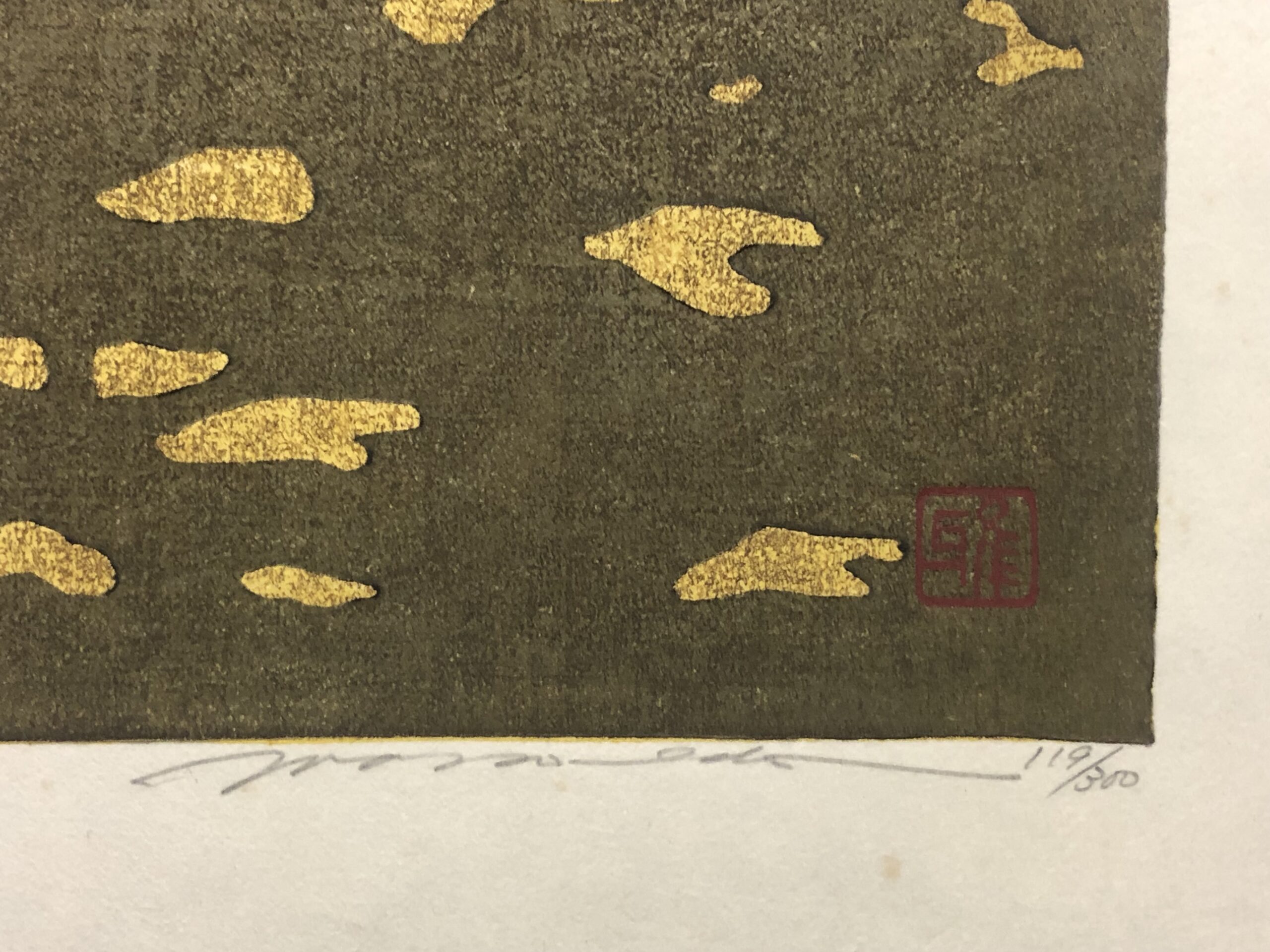 NotesMasao Ido was born in 1945 in Beipiao in Northeastern China. After his family returned to their hometown of Kyoto in 1960, he began his artistic career under Koho Yoshida, working with dyes, before shifting to woodblock prints in 1972. Under the tutelage of Shigechika Ohtsubo, Ido honed his distinct style. His work focuses on capturing traditional scenes in a state of tranquility that modern cities and culture does not easily allow. He has exhibited worldwide and his work can be found in numerous collections worldwide, including the Los Angeles County Museum of Art.