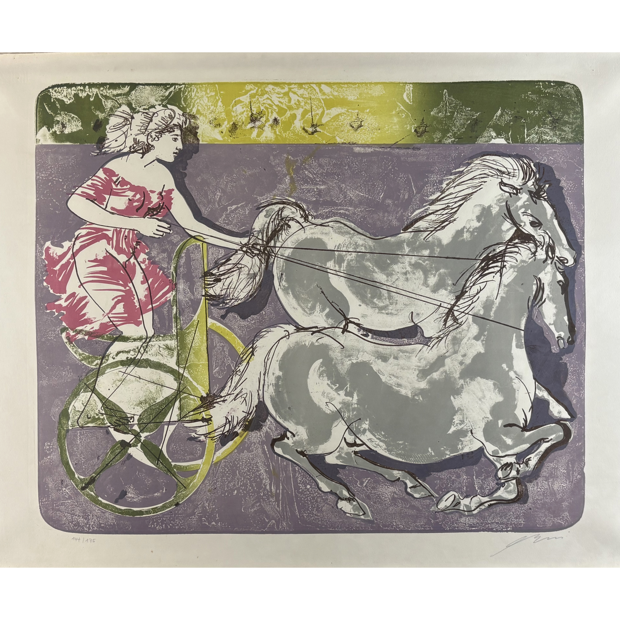 Four-color lithograph, signed in pencil and annotated “144/175”, printed on soft, fine-grained, cream wove paper.