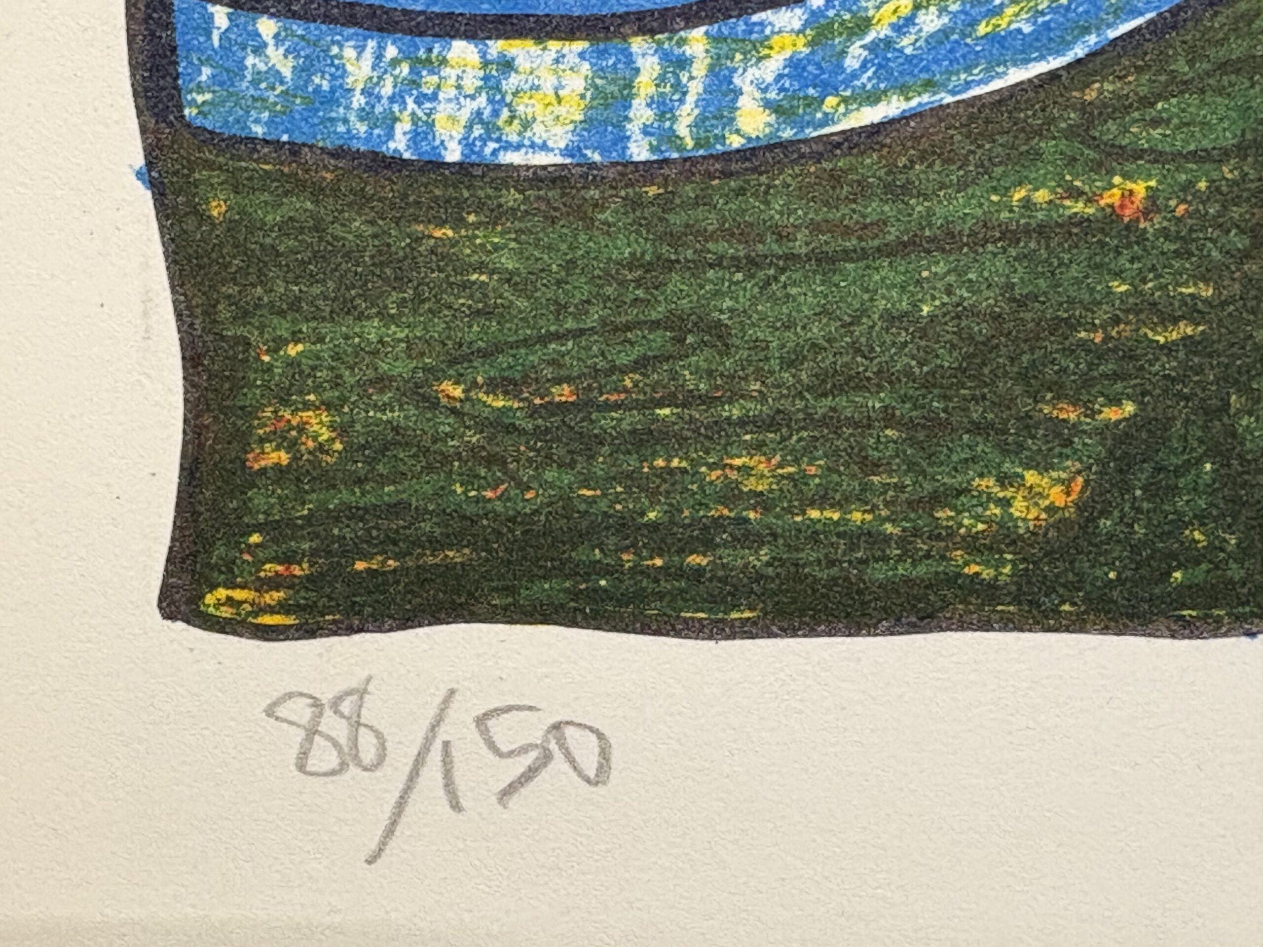 Color lithograph, signed and numbered in pencil, printed on heavy, white wove paper. Printed by Curwin Studios, Middlesex, UK, 1974.