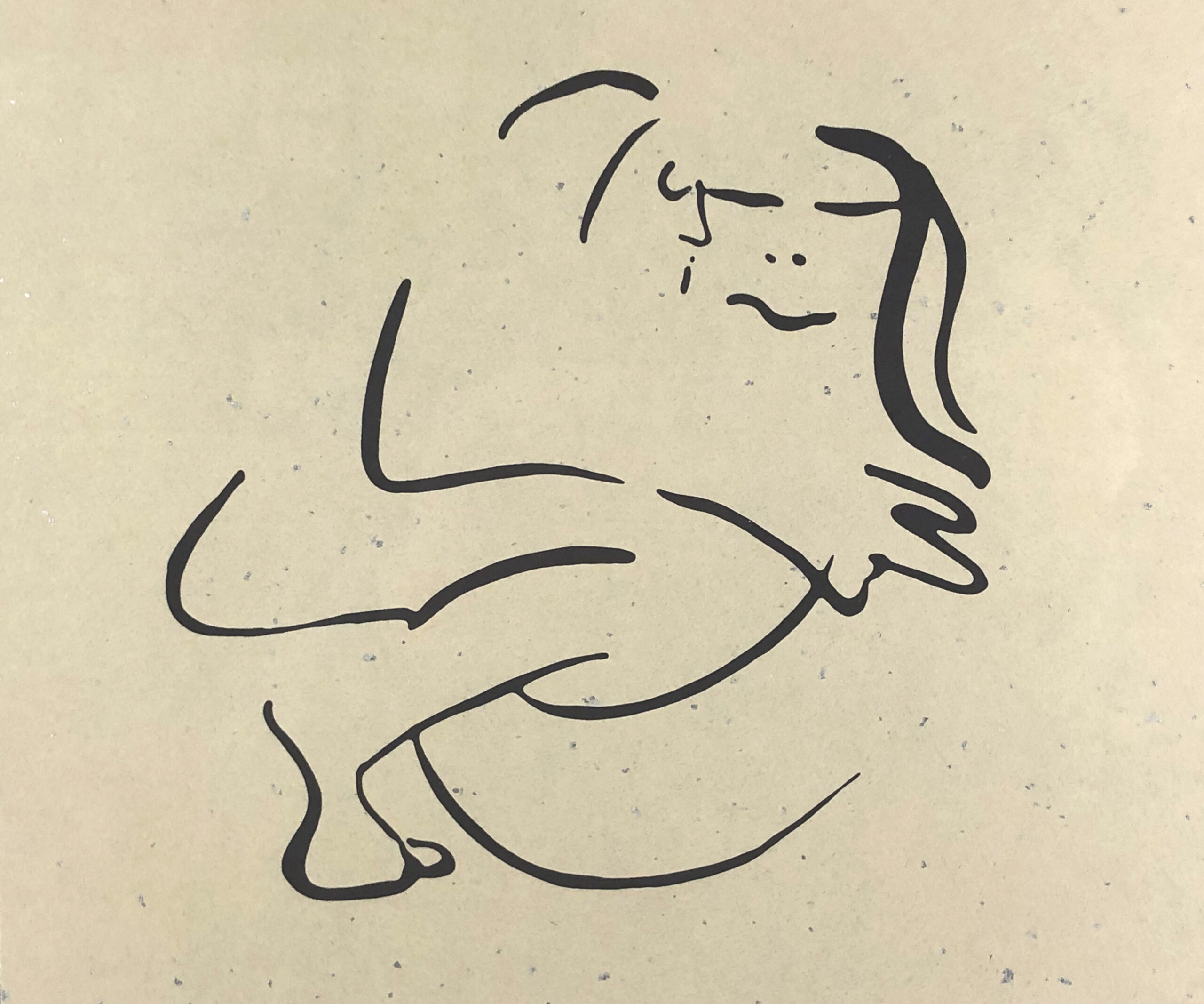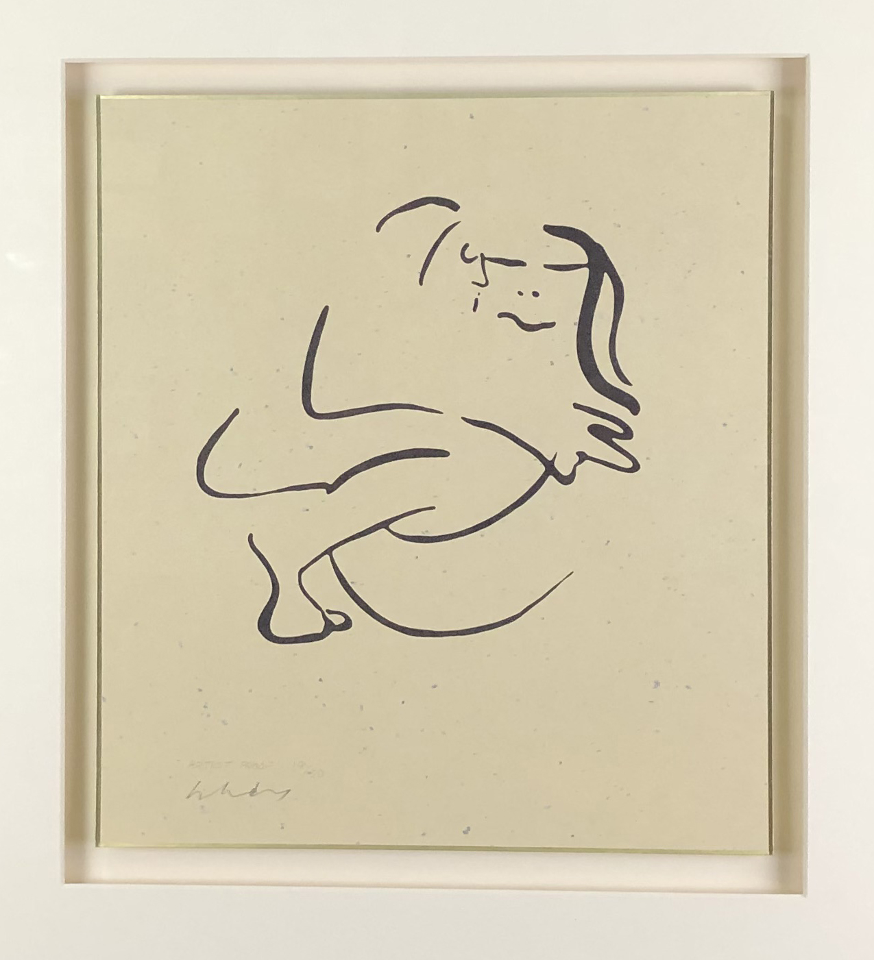 Serigraph after the drawing executed for the Bag One Suite of 1970 (reproduced as lithographs), Plate 1 of 13 in the suite, signed in pencil by Yoko Ono and annotated “ARTIST PROOF 19/50”, printed on Shikishi paper board with applied gold border, issued by Atelier GF, Ontario. Canada, 1994, edition 300 + 50 artist proofs.