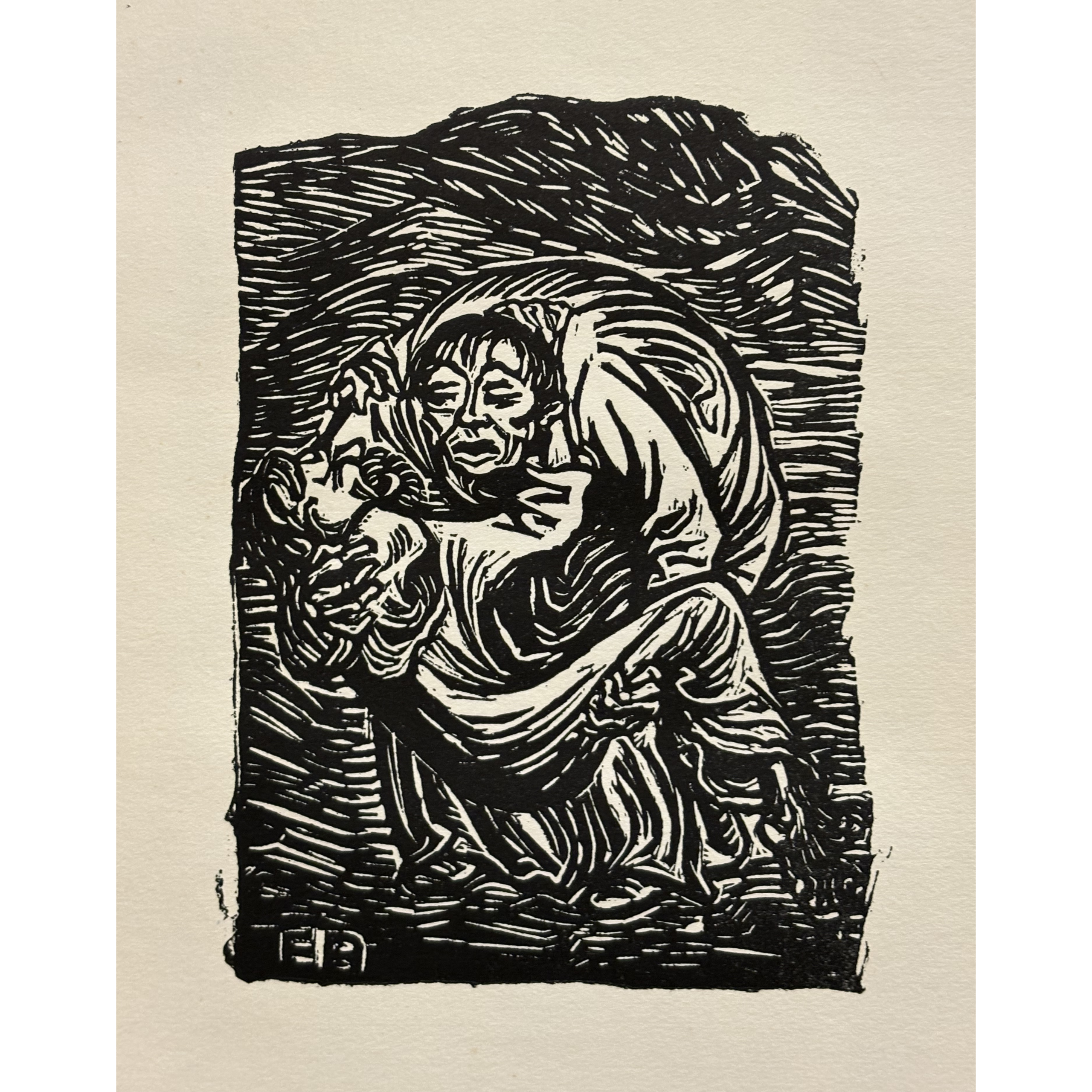 In addition to his sculpture, Barlach also wrote eight Expressionist dramas, two novels and an autobiography Ein selbsterzähltes Leben 1928, and had a distinguished oeuvre of woodcuts and lithographs from about 1910 onwards, including illustrations for his own plays.