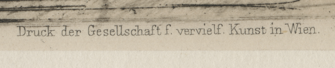 Original etching, unsigned, with engraved credits in the lower margin and letterpress title below the image, printed in brown-black ink on chine applique’ onto heavy, cream wove paper, 0.7 – 1.3 inch margins. Published by Druck der Gesellschaft, Vienna, 1901. Fine condition. Free shipping to US address.