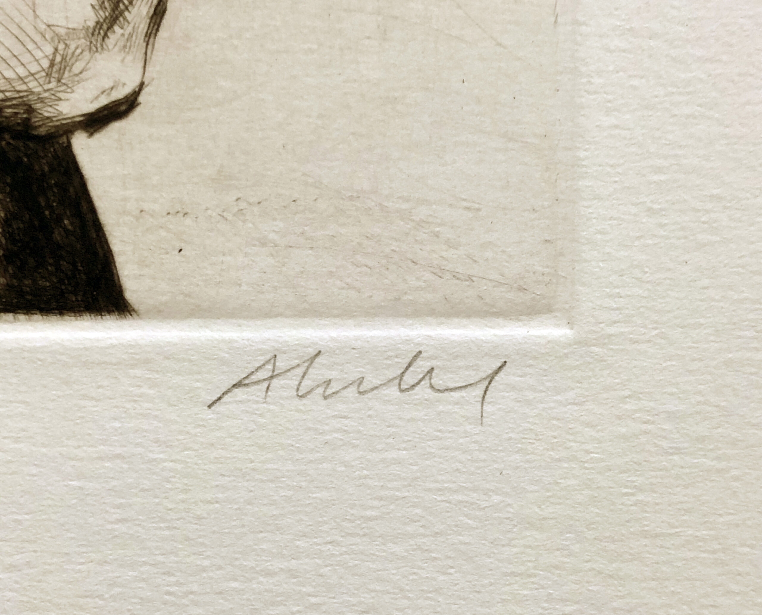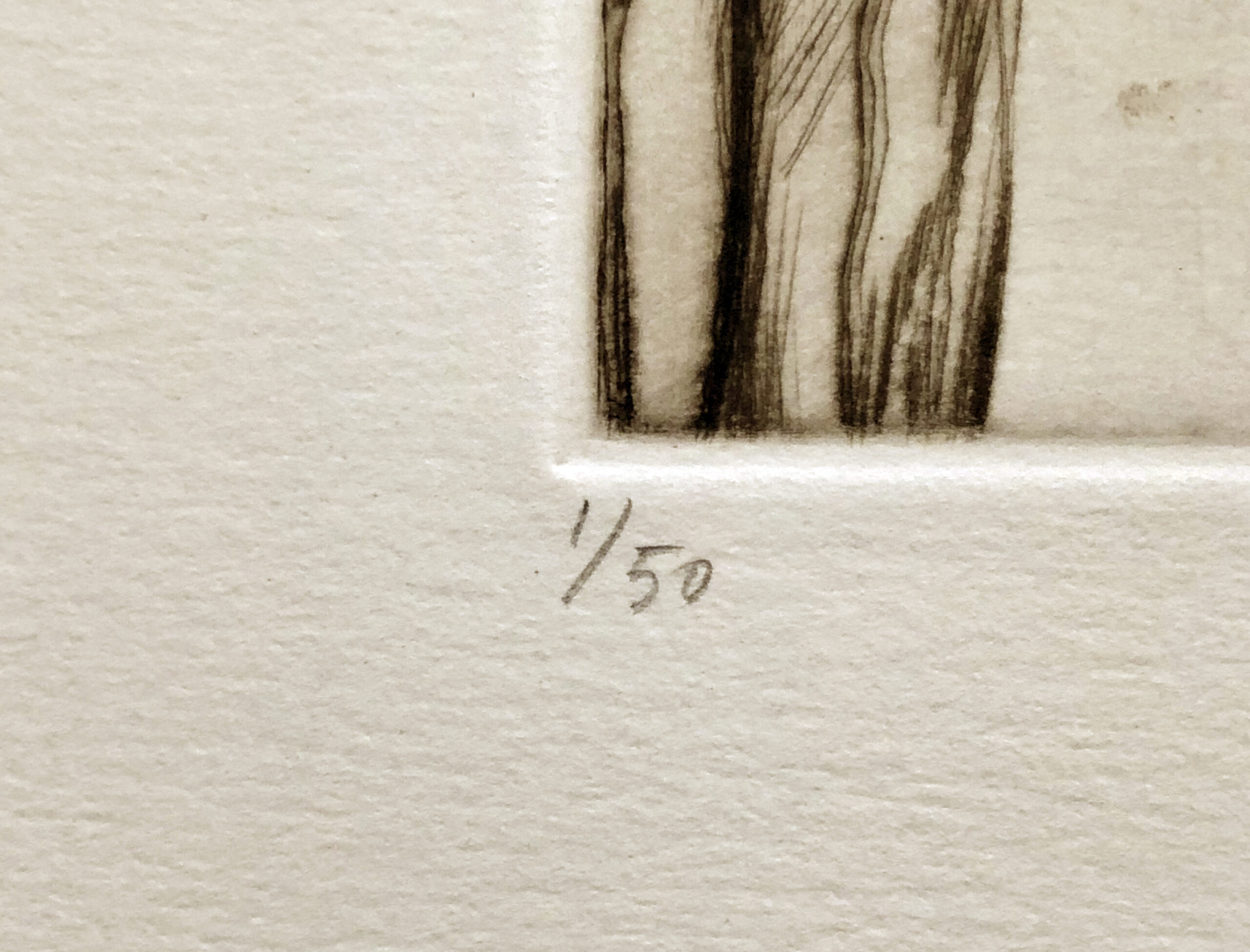 Drypoint, signed in pencil and annotated with title and “1/50”, printed on heavy fine-grained, pale-cream wove Rives paper.
