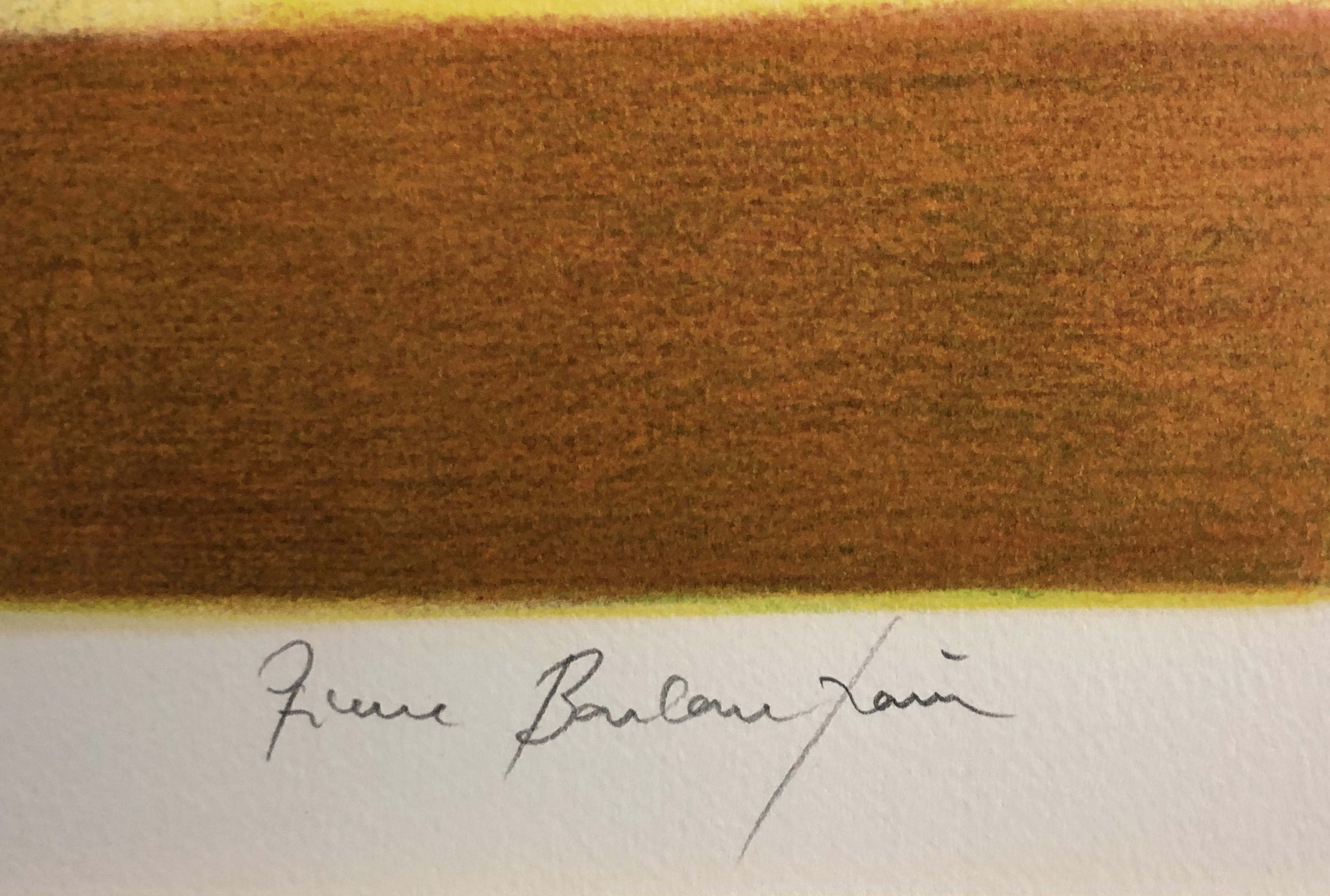 Color lithograph, signed in pencil lower right, annotated “185/250” at left.