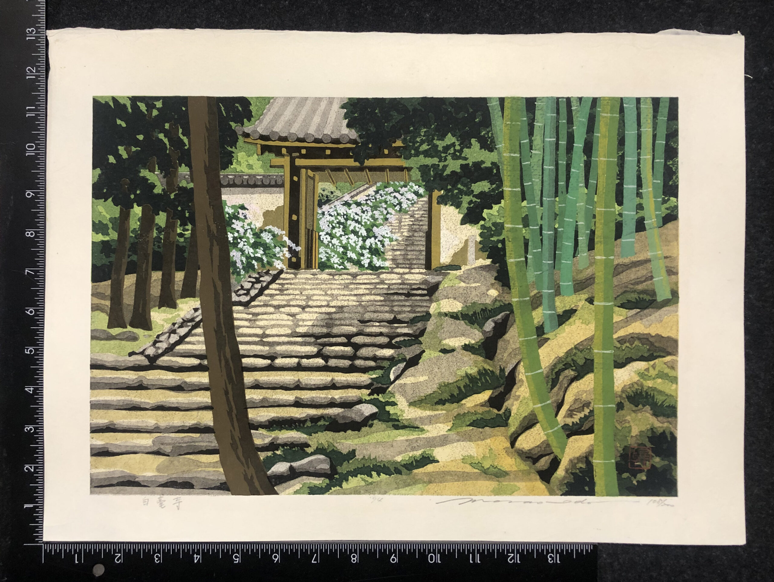 Polychrome woodblock print, signed and dated in pencil and annotated with title (in Kanji) and “108/200”, printed on cream Japan kozo paper. Fine condition. Free shipping to US address.