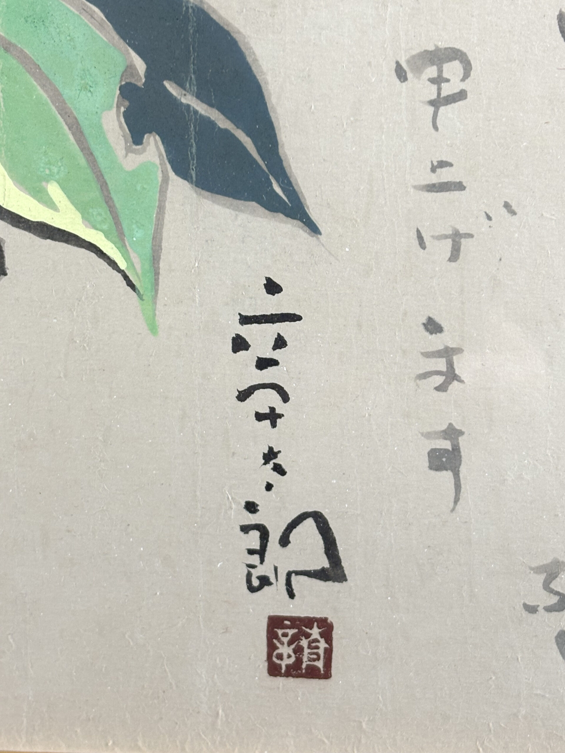 Brusg & ink and watercolors on wove paper, signed (in Kanji) lower center, with the artist’s red ink chop