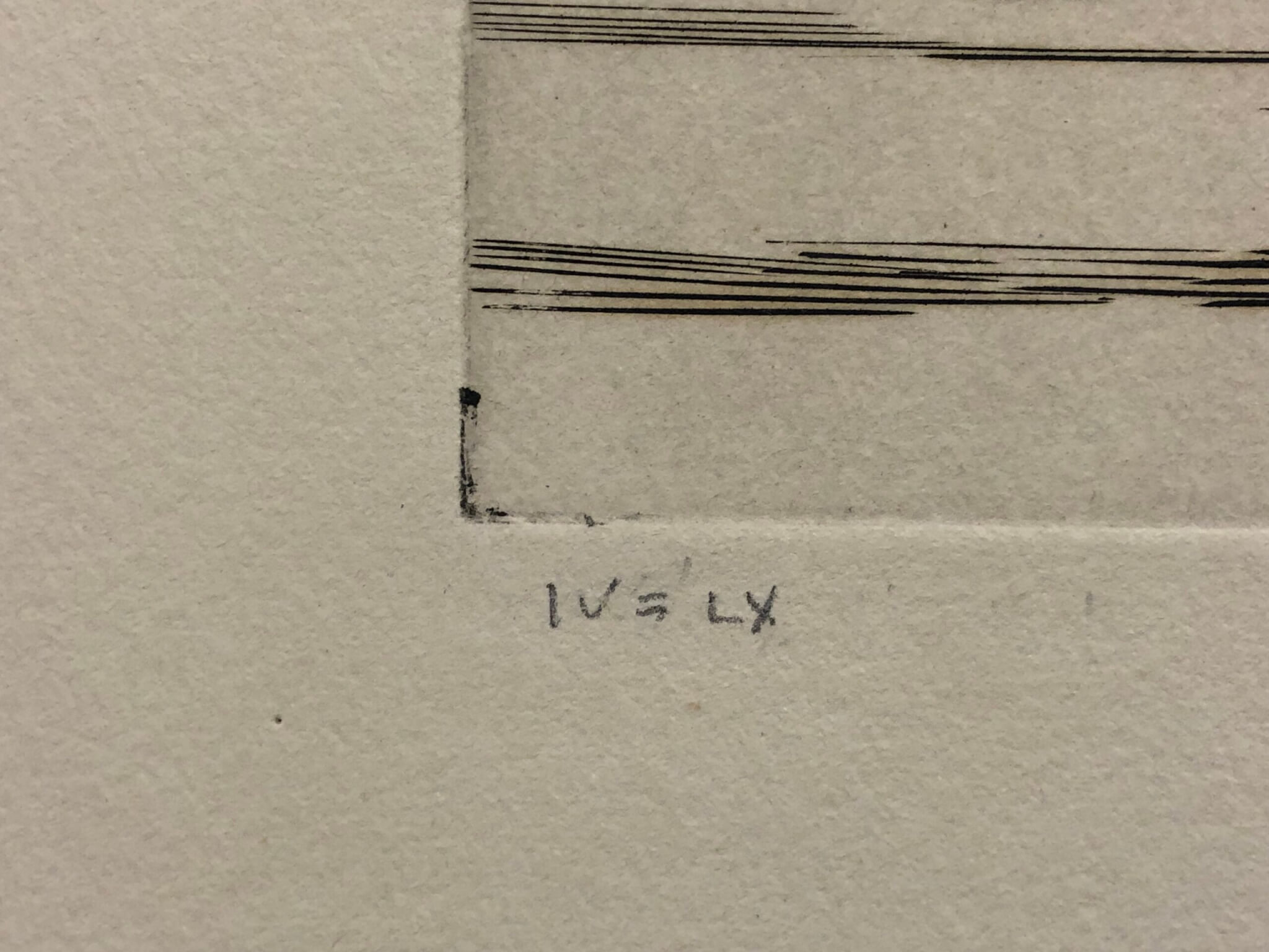 Original engraving, signed in pencil and annotated “IV=XL”, printed on heavy, felt-finish, cream wove paper. Fine condition. Free shipping to US address.