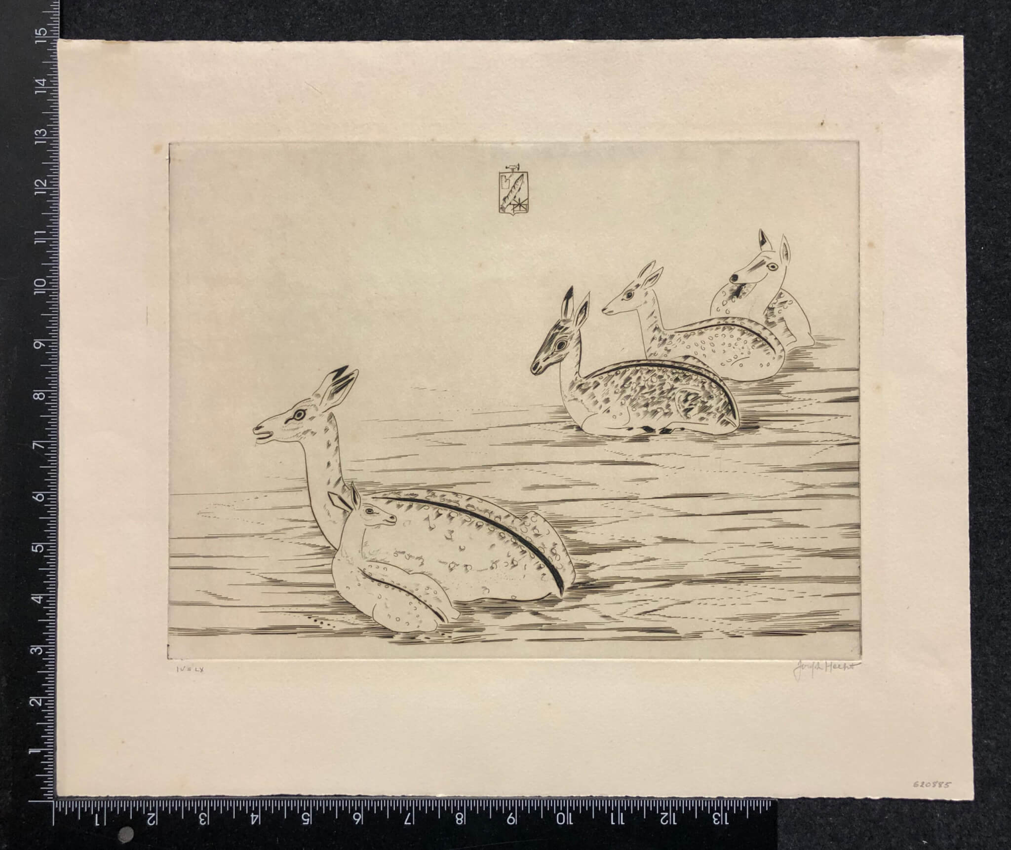 In 1929 Hecht became a founding member of the group, La Jeune Gravure Contemporaine, which staged annual group shows and was influential in keeping the spirit of printmaking alive. Hecht also associated with members of Les Peintres-Graveurs Indépendants, founded in 1923 by J. E. Laboureur and Raoul Dufy. It is doubtful that Hecht knew each member of these groups, but it is probable that he was familiar with their work and they with his, and that this provided an opportunity for the exchange of techniques, subjects, and ideas. Hecht was an intermediary between the avant-garde artists of Atelier 17 and more traditional printmakers.