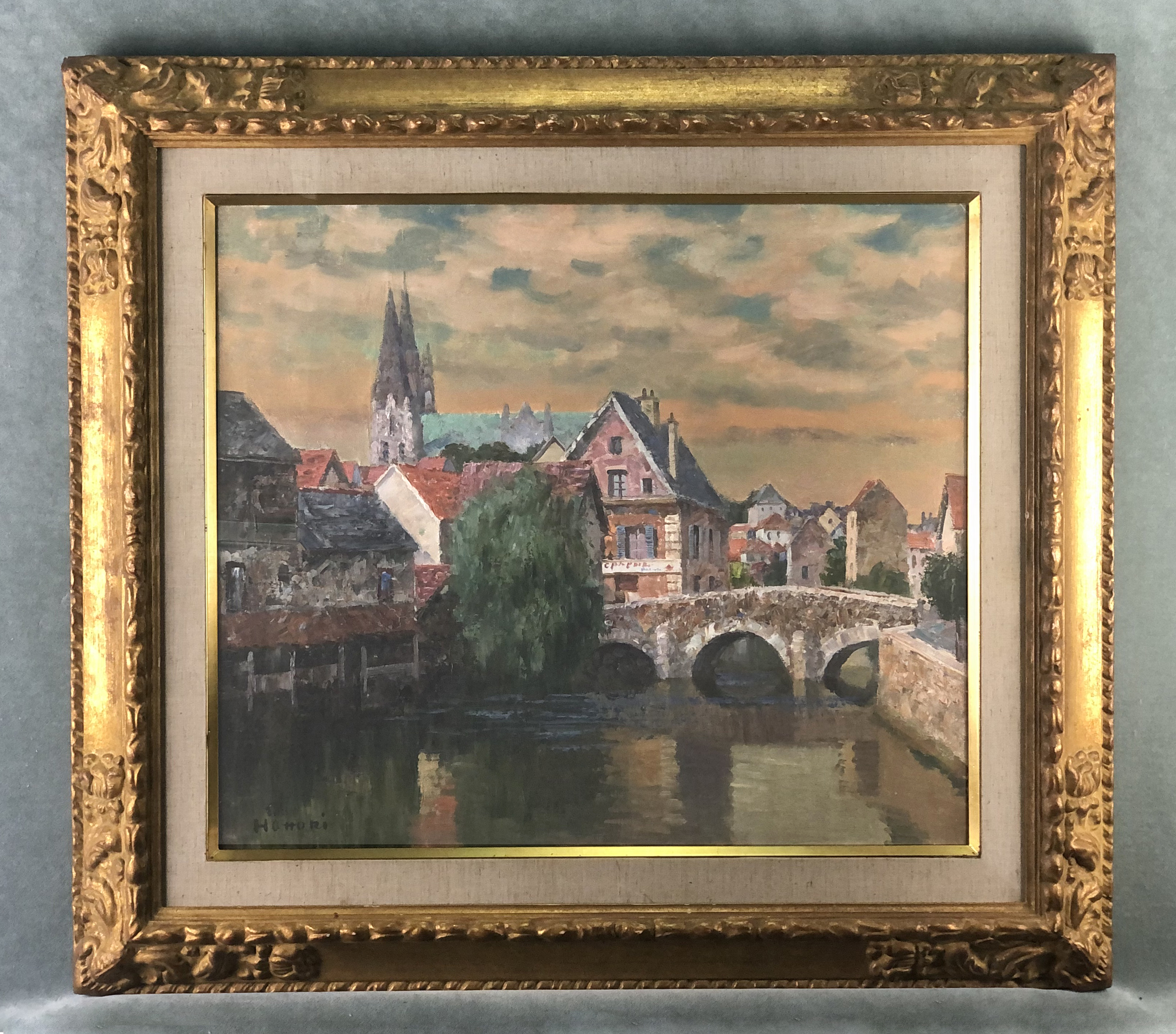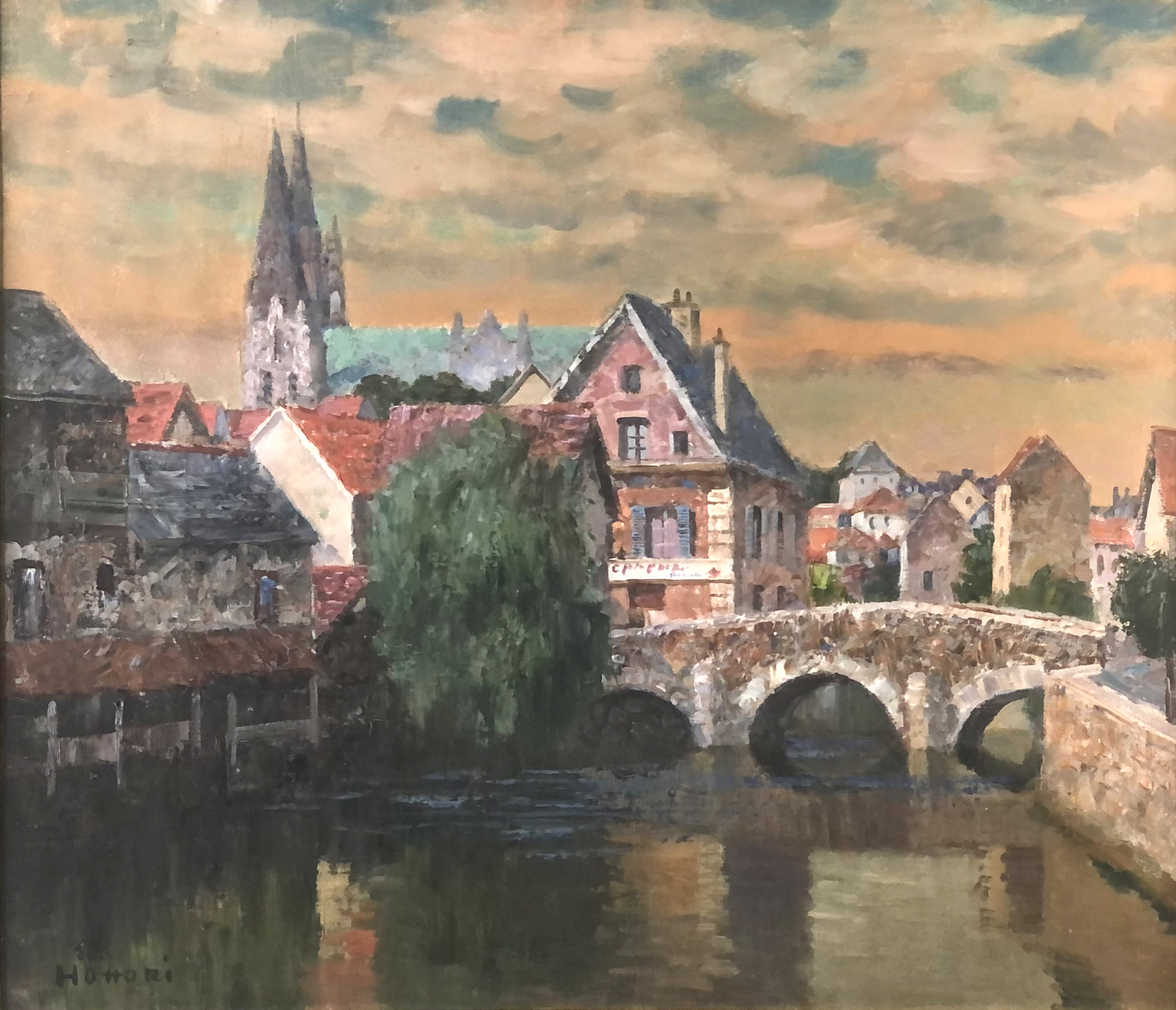 Oil on canvas, signed “Tomatsu” in Kanji and “Hattori” in Roman letters at lower left.