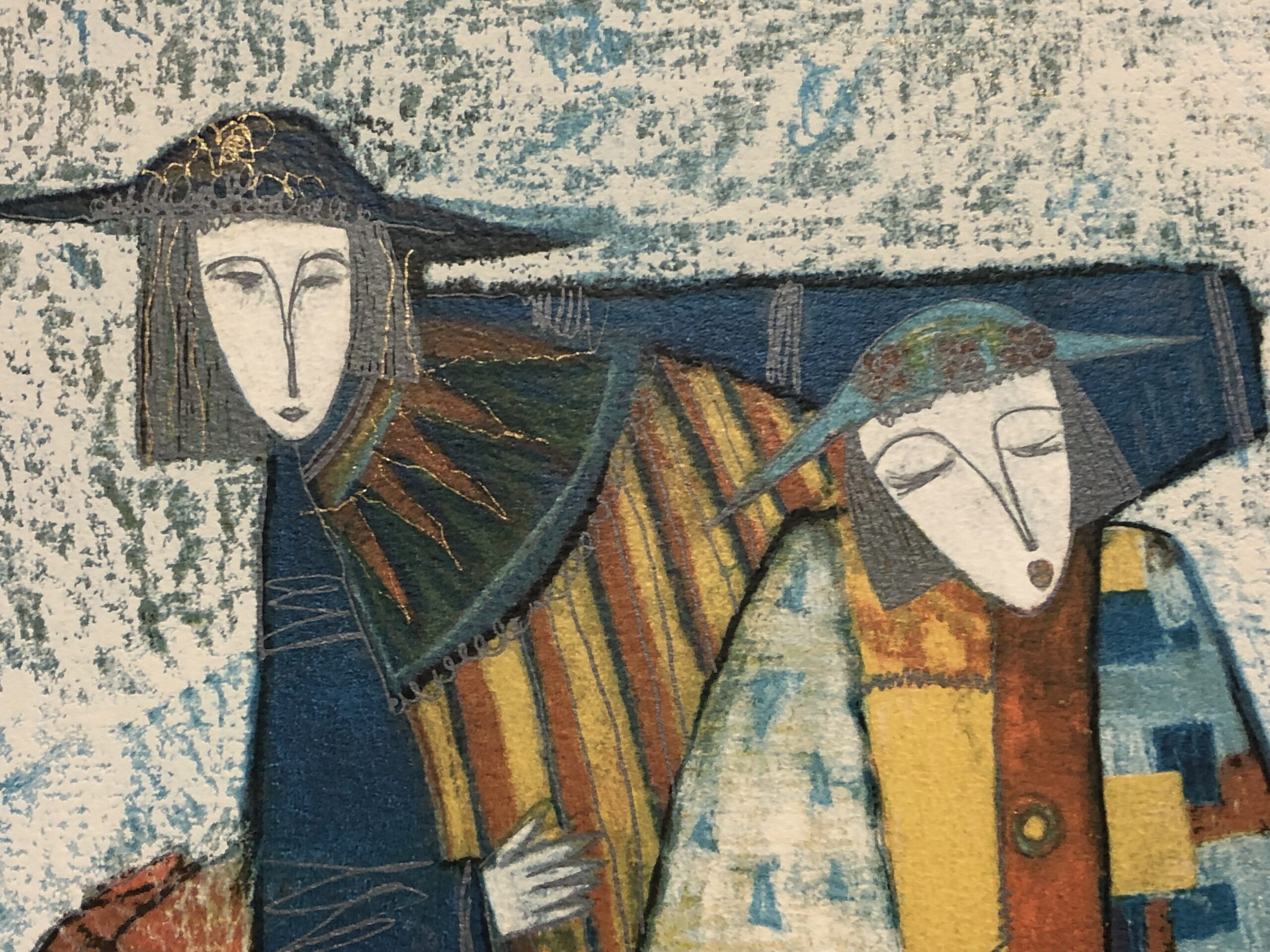 Asia combines multiple styles to create modernistic, cubist-styles drawings and paintings. She employs various approaches with her works including traditional, modern, folk and contemporary art styles. Asia’s paintings and drawings concentrate on exploring people and objects and their interaction with each other and the world around them. Each picture tells its own tale and some, like “Life Story” are a serigraph progression of scenes that fuse together to relate a progressive story. Many of her works feature women as protagonists, depicting women's interactions with each other and with surrounding characters and objects.