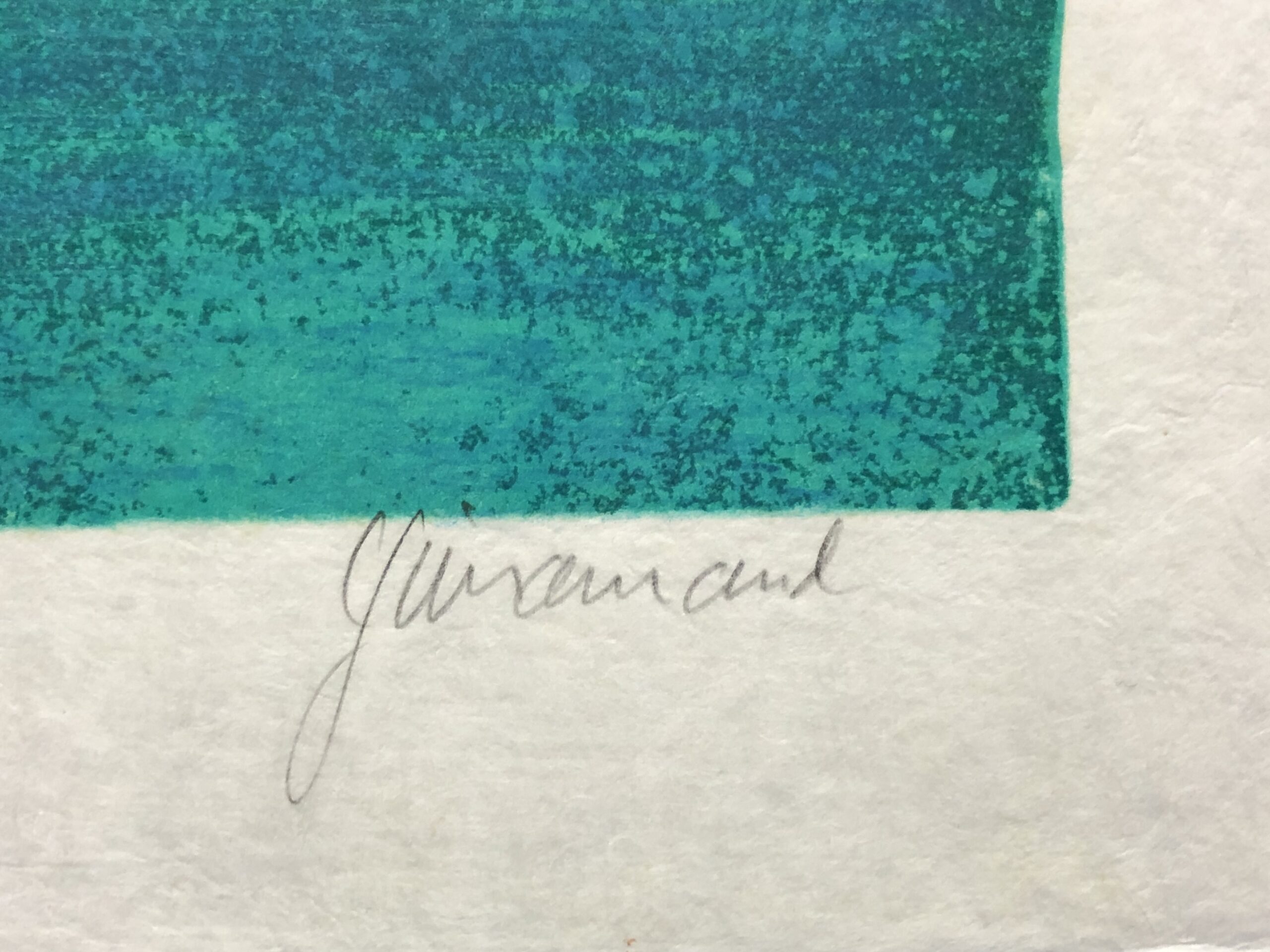 In 1954 he began a series of lithographs at the Atelier of Fernand Mourlot under the council of Charles Sorlier. Mourlot’s Atelier was a popular gathering place for such noted artists of the epoch: Miro, Chagall, Estève, Rebeyrolle, Manessier, Cueco, and Cottavoz. Many of these artists became Guiramand’s life long friends.