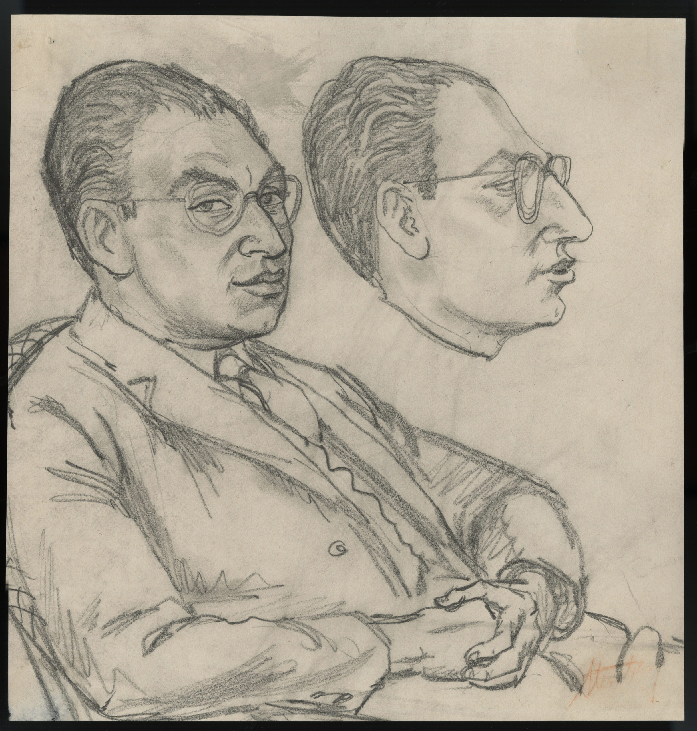 Conte crayon on wove paper, signed in red pencil at lower right corner, signature severely rubbed, printed on smooth, cream wove paper, without margins. Study for the screen print “Mervin Jules” of 1944. Fine condition overall, minor soiling, few spots rubbed. Free shipping to US address.