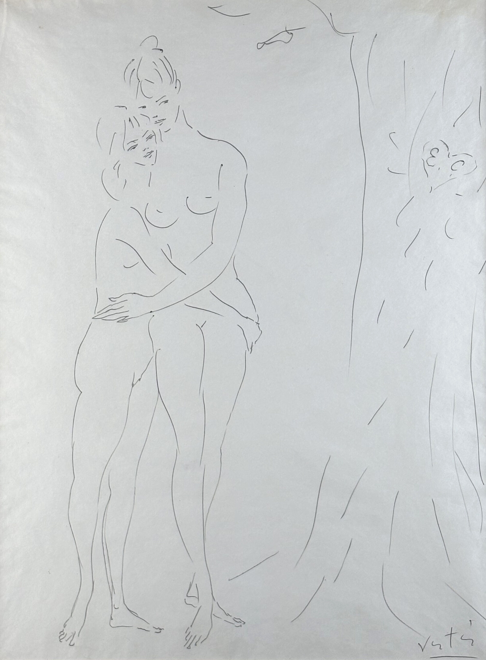 Pen & ink on thing wove paper, signed lower right corner.