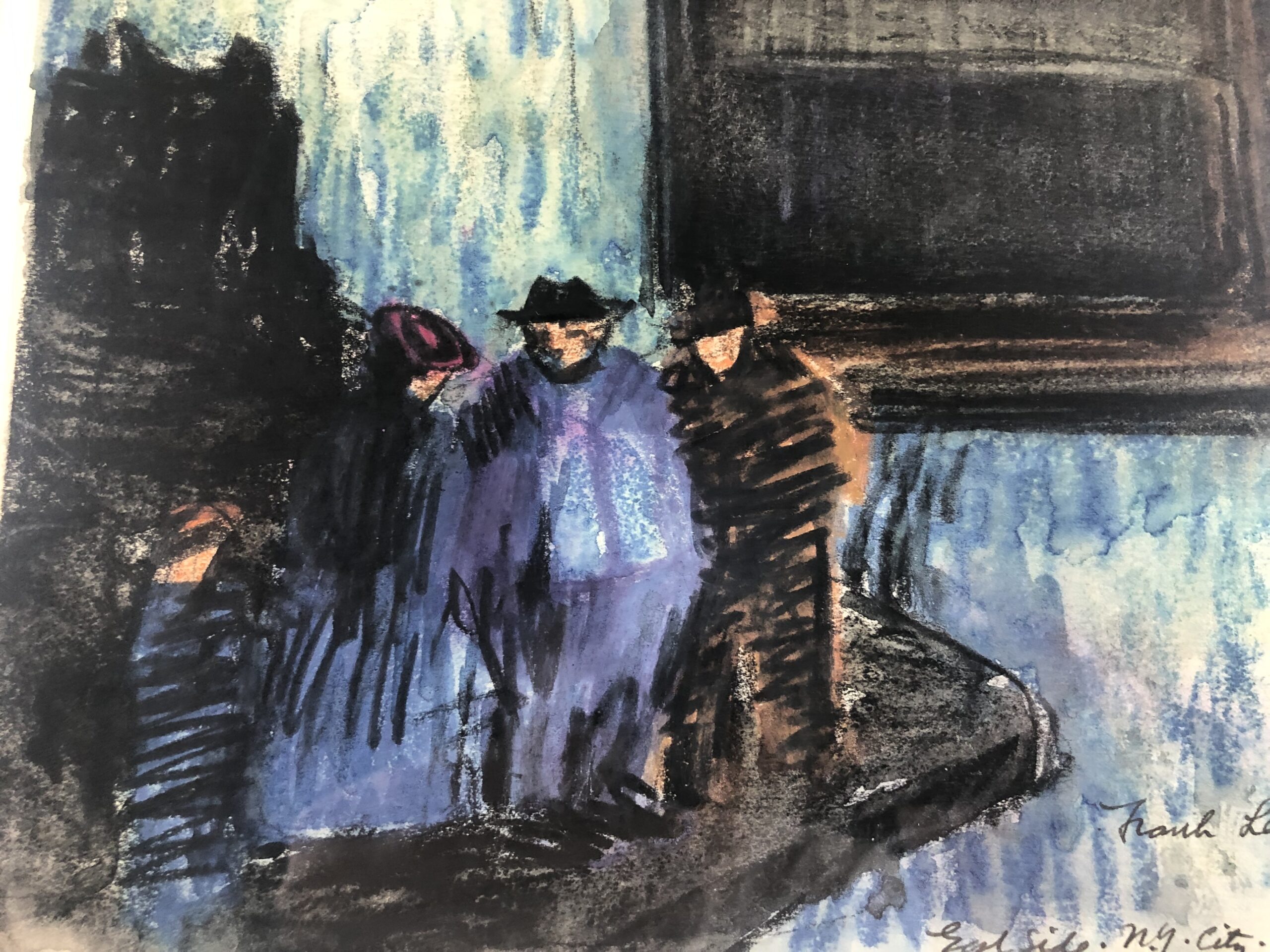 Greasy pastel on paper, signed, dated, and title in ink in the image, executed on smooth, gray paper, without margins.