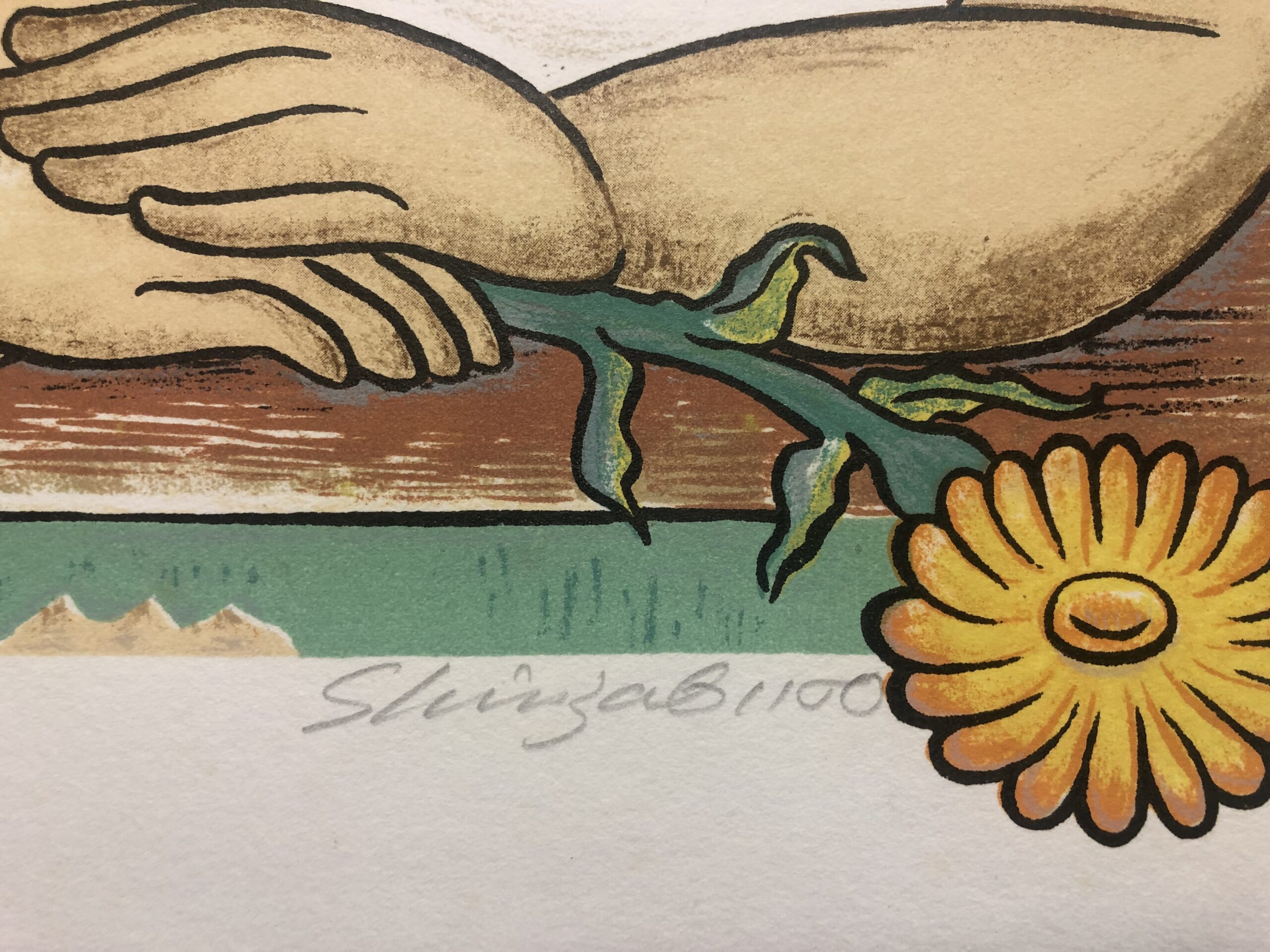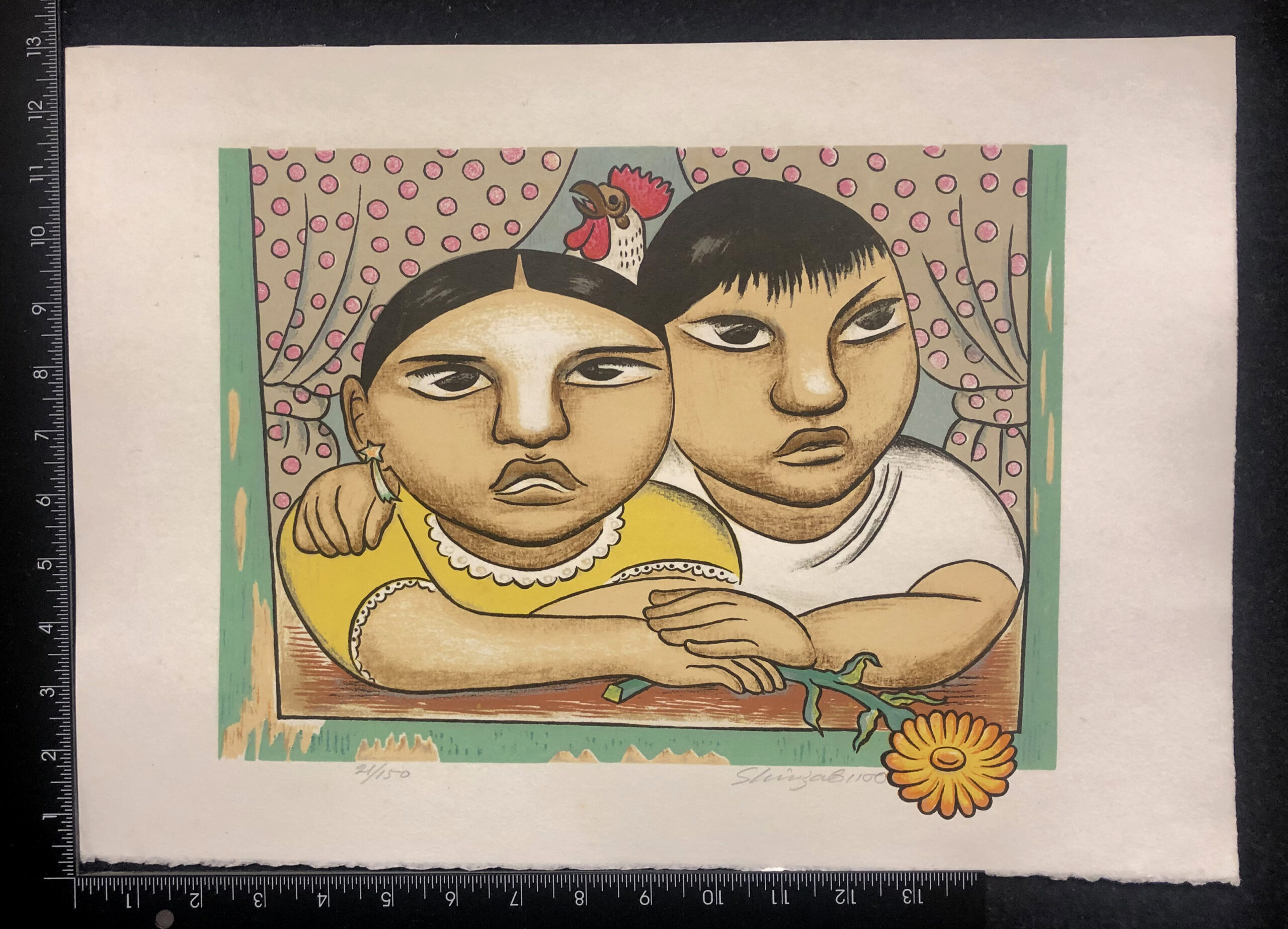 Color lithograph, signed in pencil and annotated “21/150”, printed on heavy, felt-finish, white wove paper. Fine condition, few faint spots of scattered foxing. Free shipping to US address.