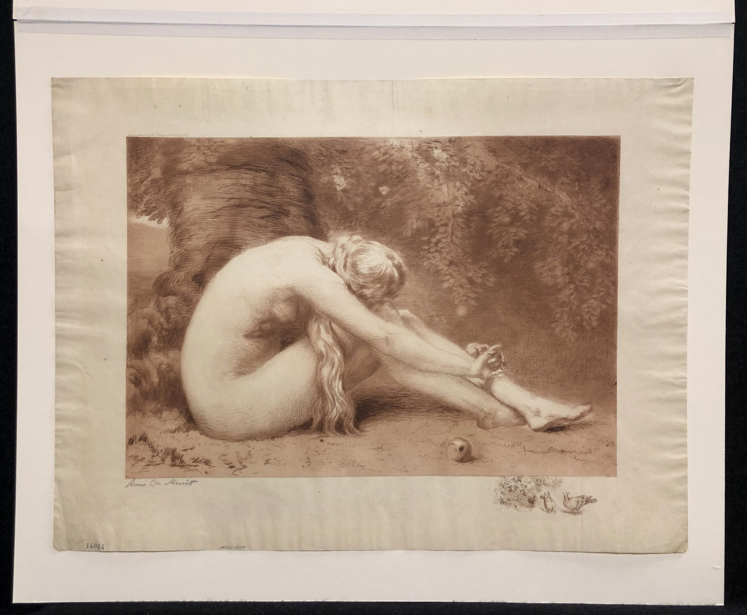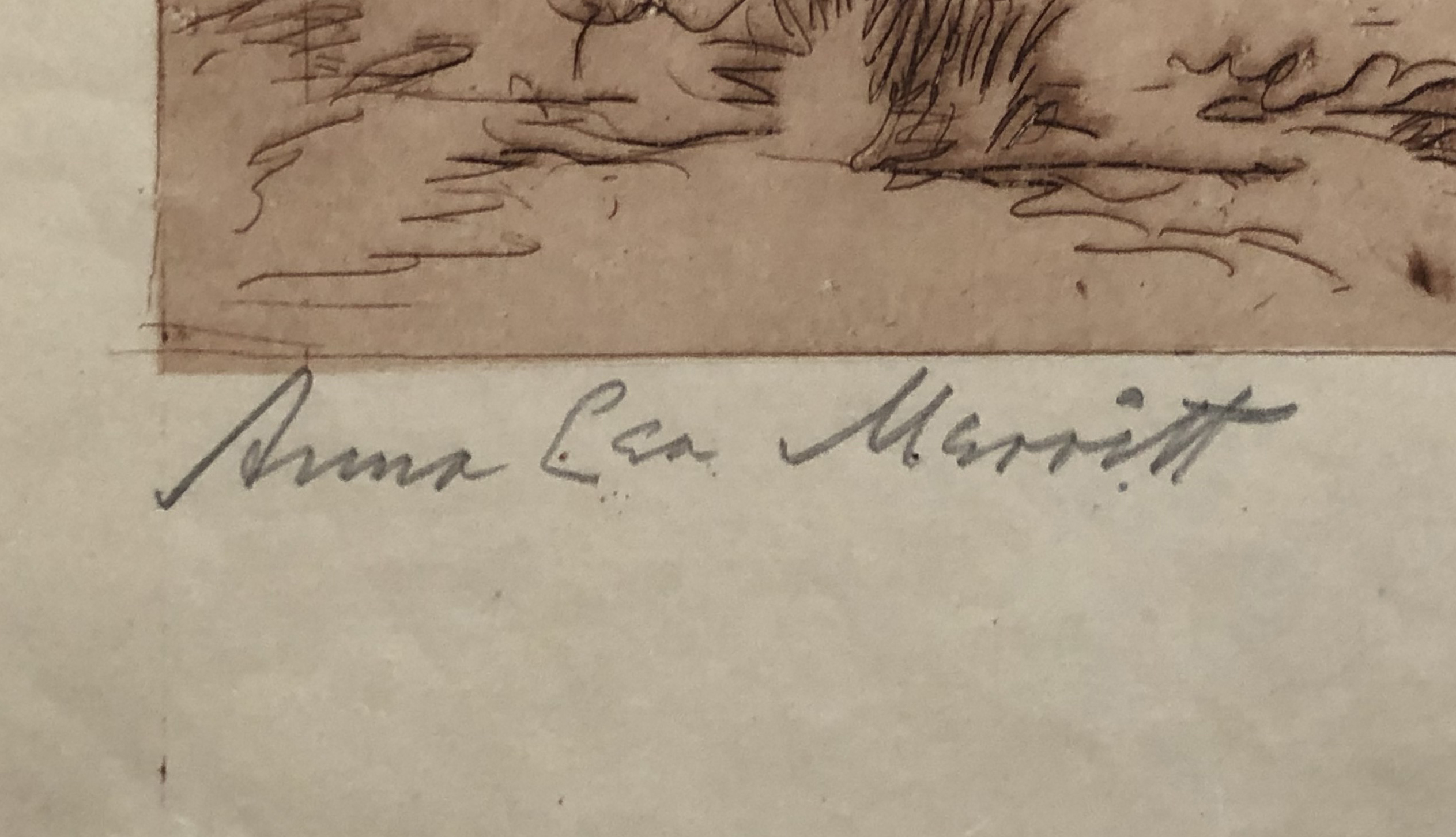Etching, signed boldly in pencil at lower left, printed in bistre ink on smooth Japan vellum. Collection National Museum of Women in the Arts.