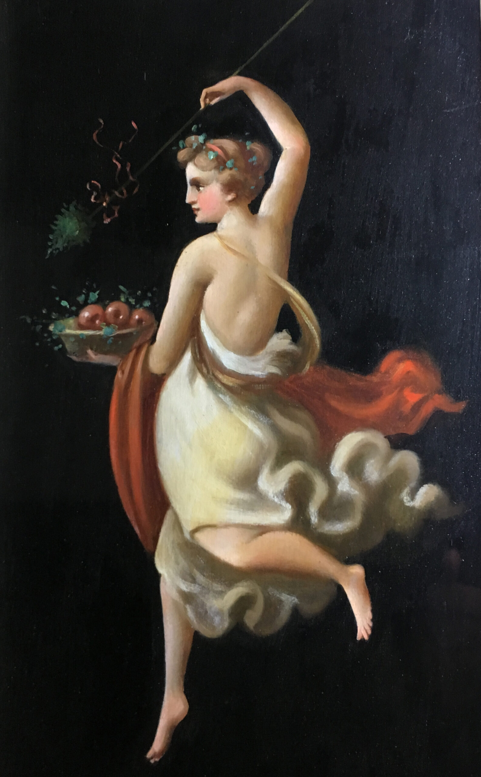 NotesThis painting is a fragment of a larger canvas painted ca. 1829-30 by an unknown American artist. The image was inspired by the recent archeological discoveries at Pompeii. A variant of this image was found on the walls of the villa of a wealthy Roman citizen excavated at Pompeii in 1829. The news of the discovery traveled quickly to the Colonies and rapidly became the fashion for rich families to decorate their homes.