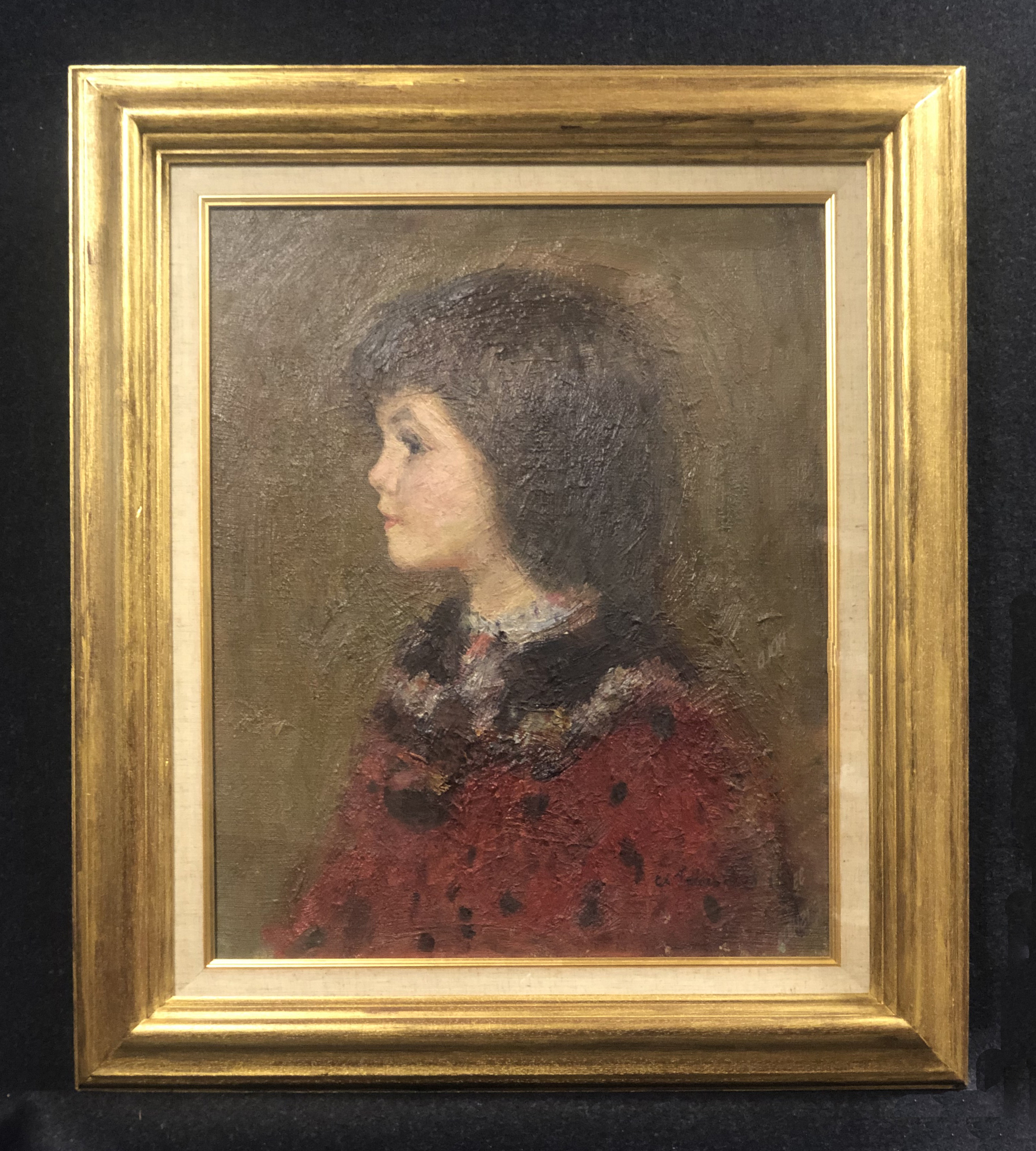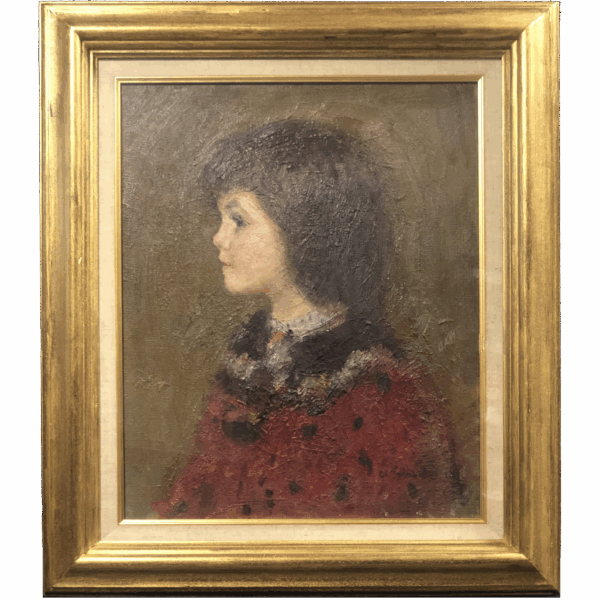 Oil on canvas, signed (in Cyrillic) and dated “79” lower right, annotated on verso in Cyrillic “Devorka v Krasnom”