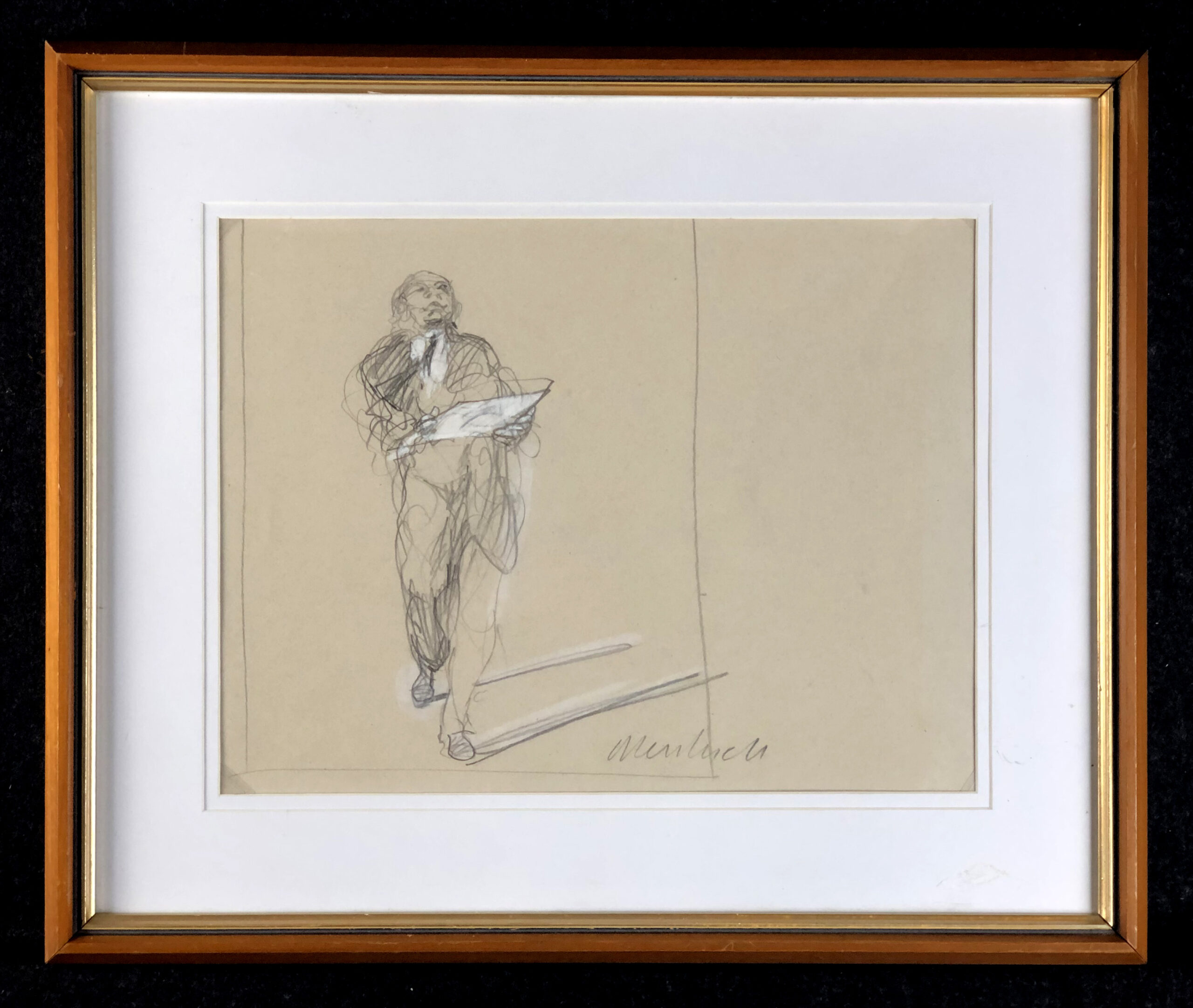 Graphite heightened with white chalk on wove paper, signed in pencil lower center.