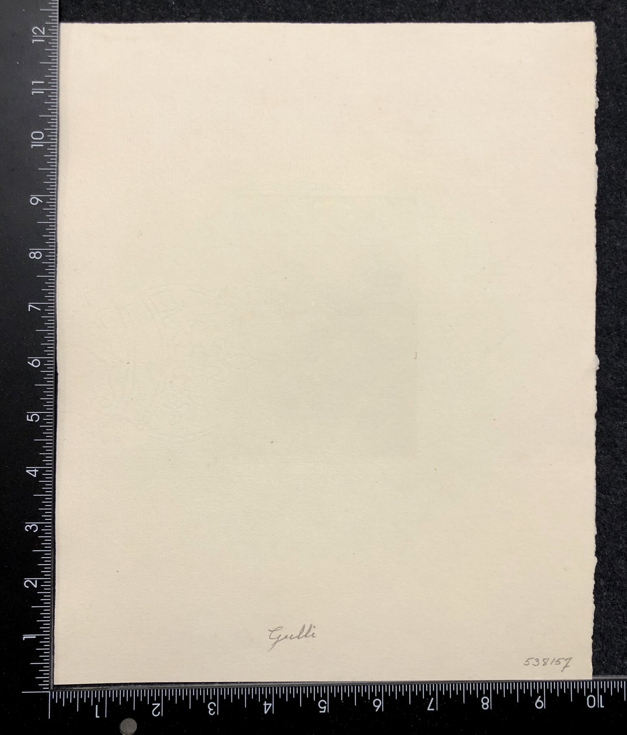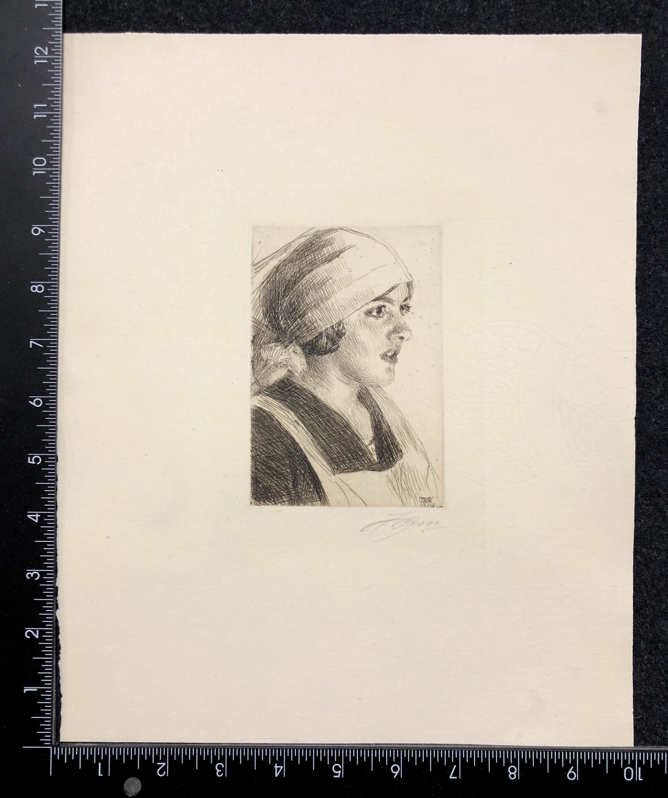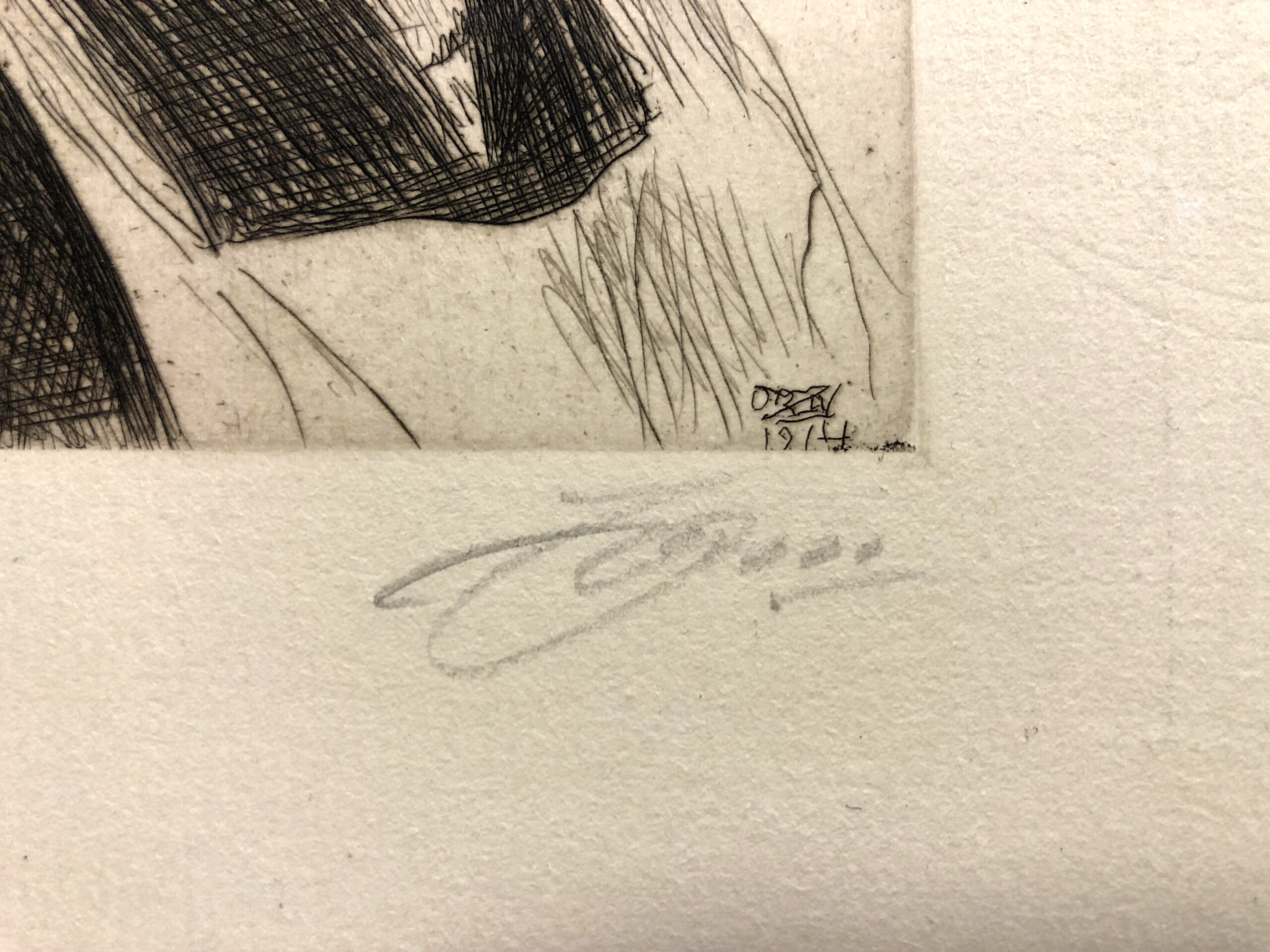 Etching, signed in pencil, printed on felt-finish, cream, laid paper. Fine condition. Free shipping to US address.