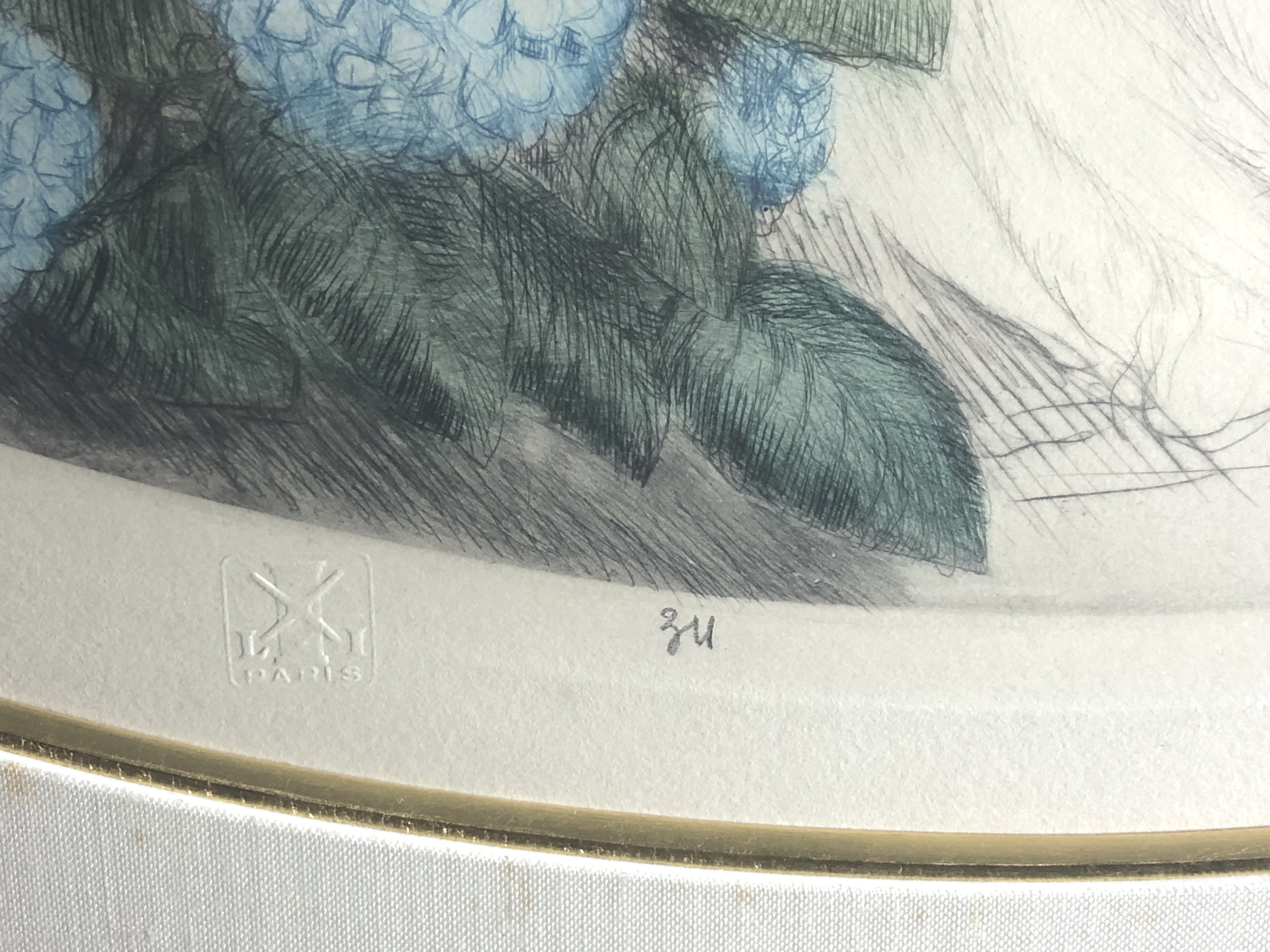 Etching, drypoint and aquatint with hand-coloring, signed in pencil, with the artist’s embossed blindstamp.