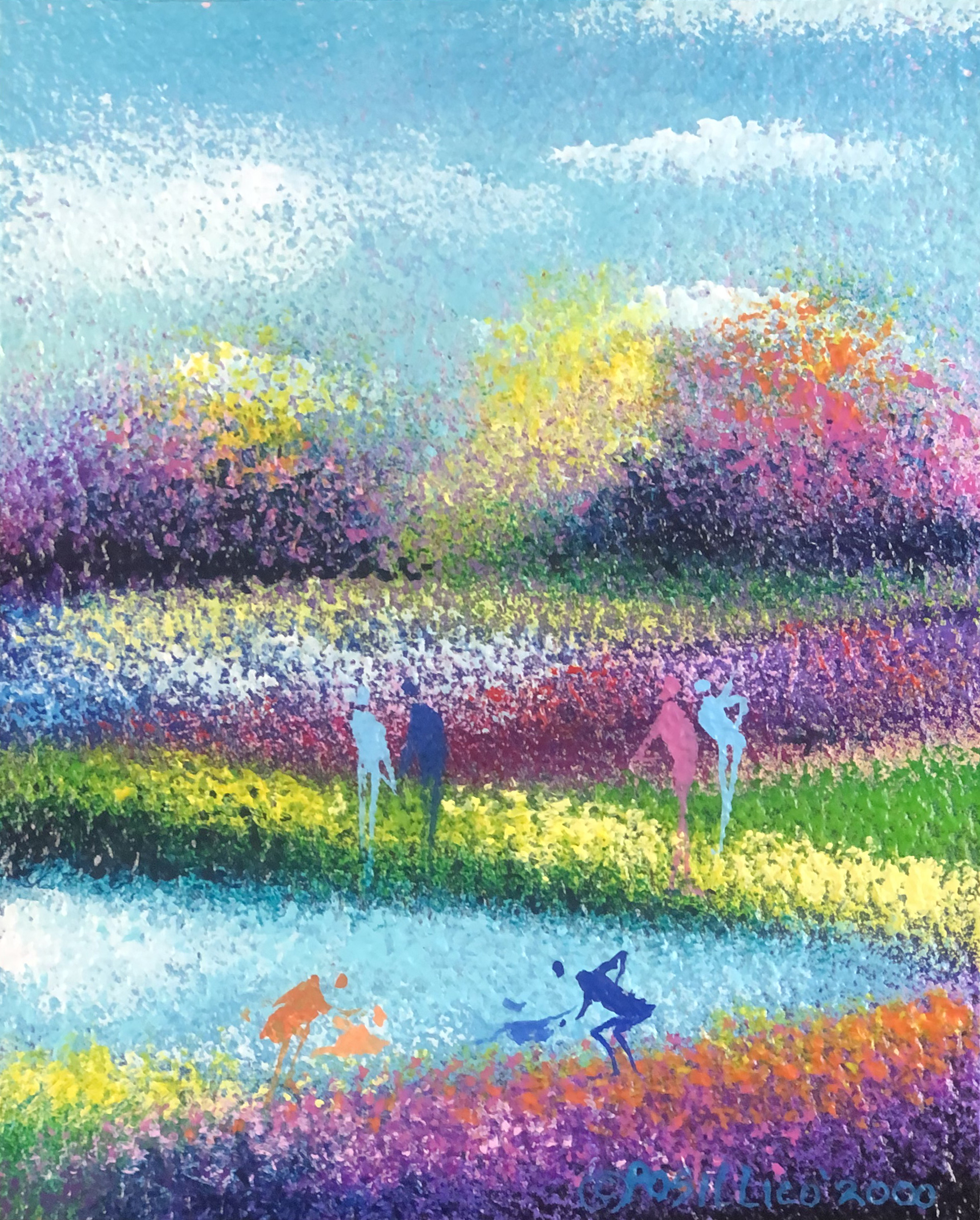 For 50 years, his characters have been in his Gallery themes, the Landscape series, Cityscapes and in more recent years, his enlarged People paintings. Working in oils, acrylic, mixed-media and dimensional constructions, all have had a story to tell, visual as well as verbal with his titles. Leo wanted art to be fun, especially with his Word Series.