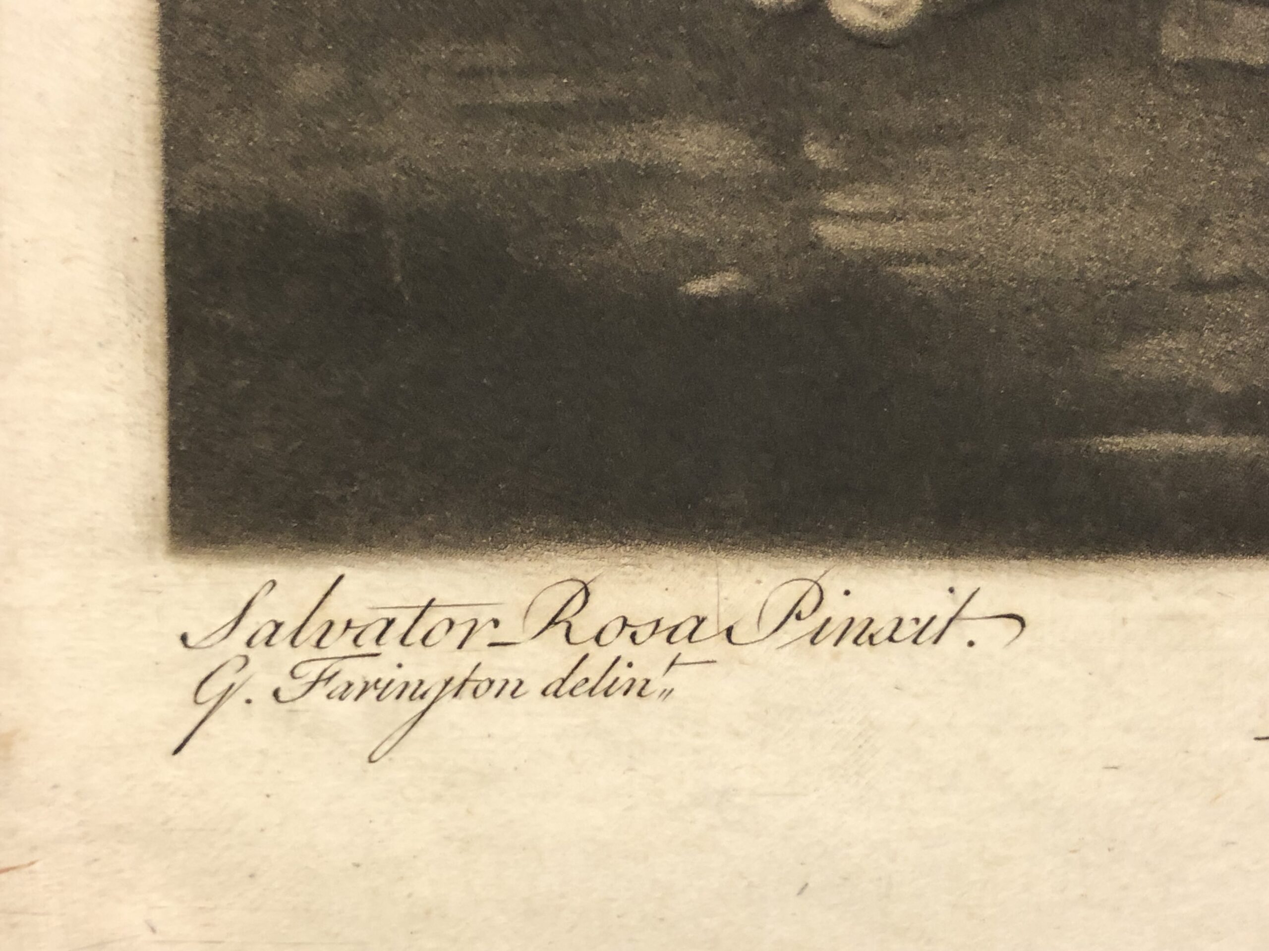 Mezzotint engraving after the painting by Salvator Rosa now in State Hermitage Museum, St. Petersburg. Unsigned, with engraved title and credits in the lower margin, printed on fine-grained, cream laid paper. Published by John Boydell, London, 1778. Fine condition. Free shipping to US address.