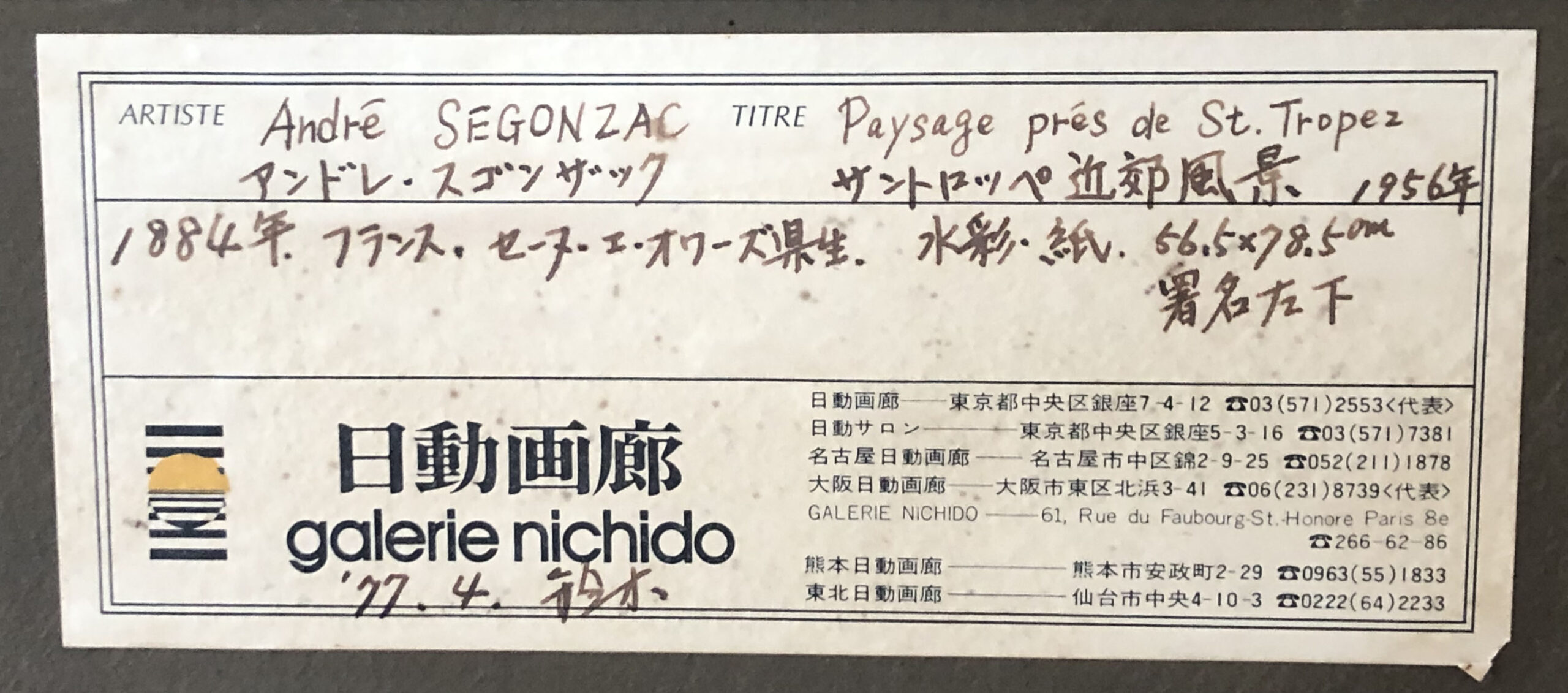 The gossamer quality of his etchings stood in contrast to the thickly painted surfaces and generally somber color of his oil paintings, which reflected his admiration for Courbet and Cézanne. His subjects include landscapes, still lifes, and nudes. He influenced other artists like Samuel Peploe. Prolific until the very end of his life as a painter in oils and watercolor, and as a printmaker, Segonzac died at age 90 in 1974. He was married to the actress Thérèse Dorny.