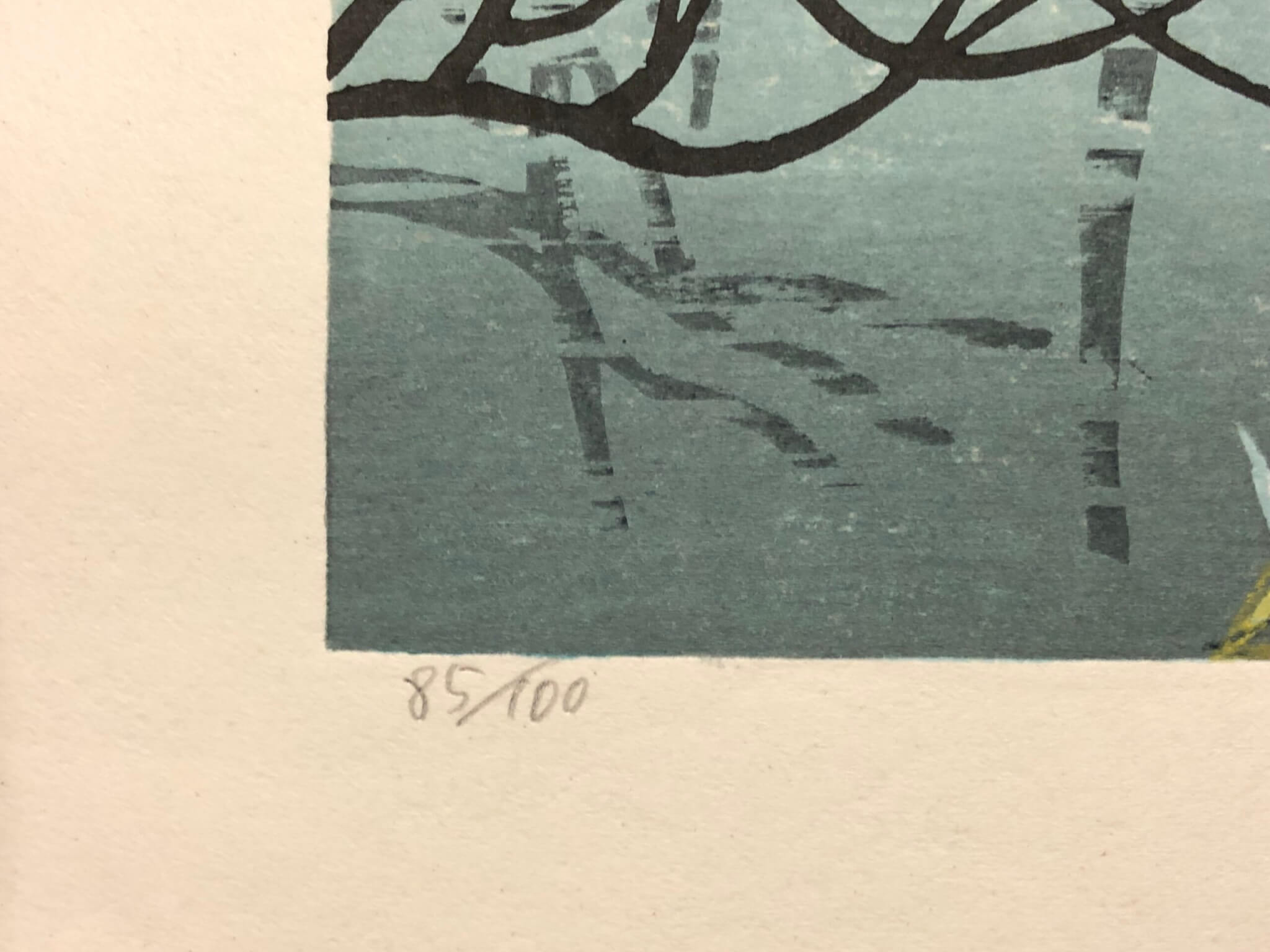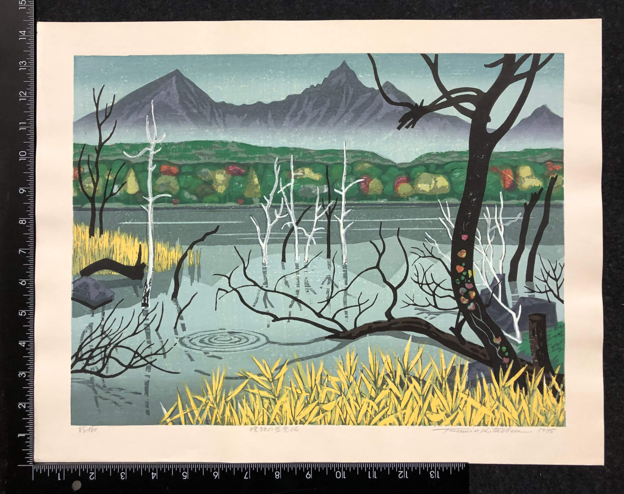 Polychrome woodblock print, oban, signed and dated in pencil and annotated with title (in Kanji) and “85/100”, printed on hand-made Japan kozo paper watermarked “Fumio Kitaoka”. Fine condition. Free shipping to US address.