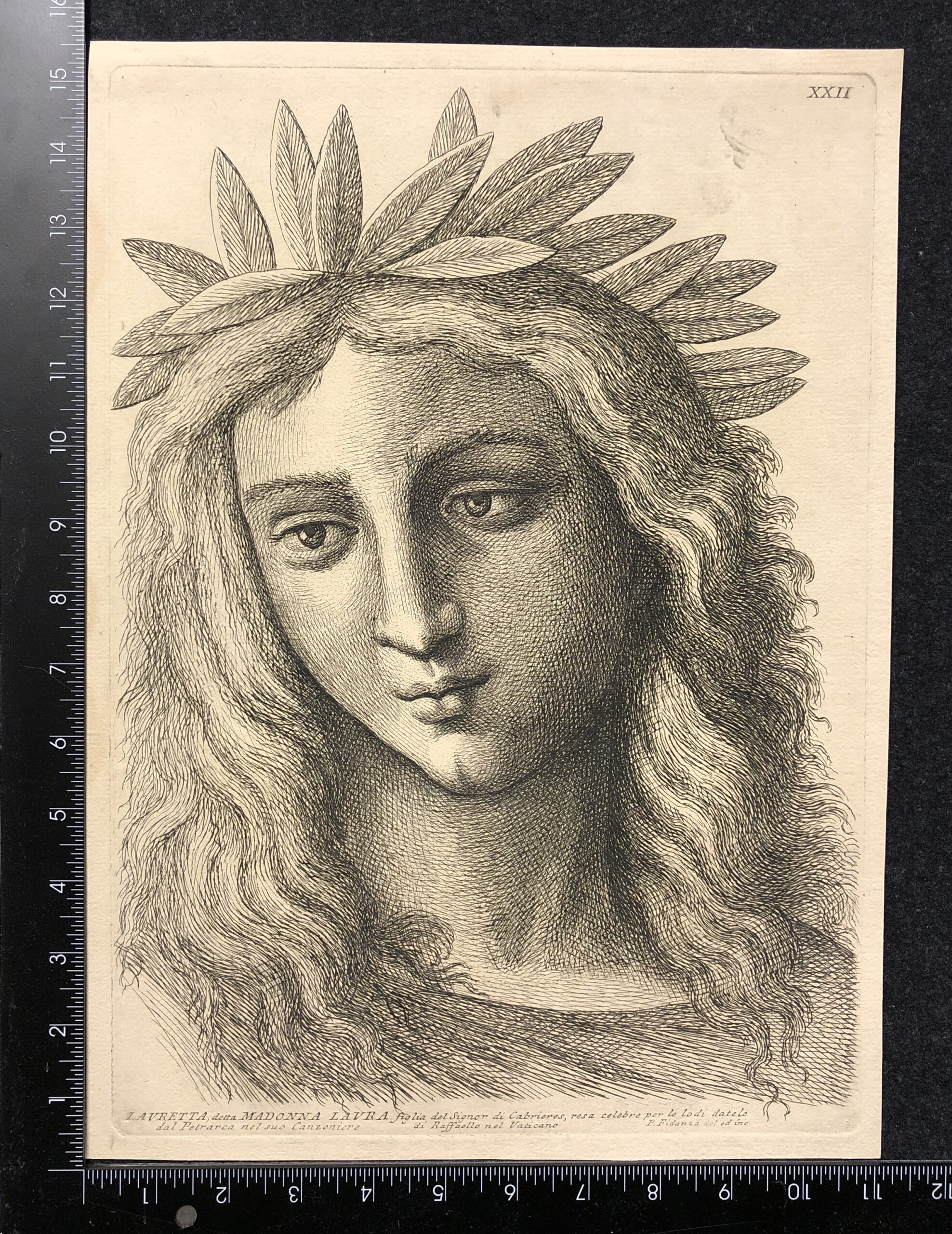 LAURETTA, called MADONNA LAURA daughter of the lord of Cabrieres, made famous by the date given by Petrarca in his Canzoniere by Raphael in the Vatican.
