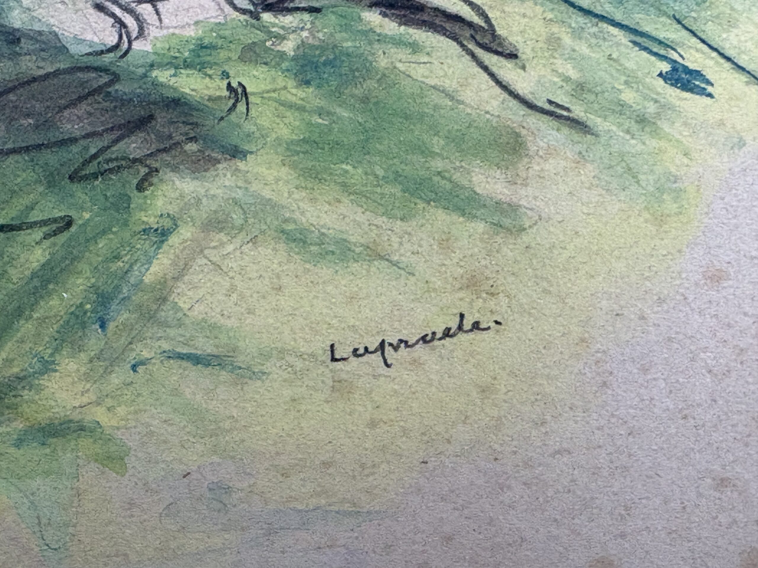 Graphite and watercolors on wove paper, signed with pencil in the image lower right.