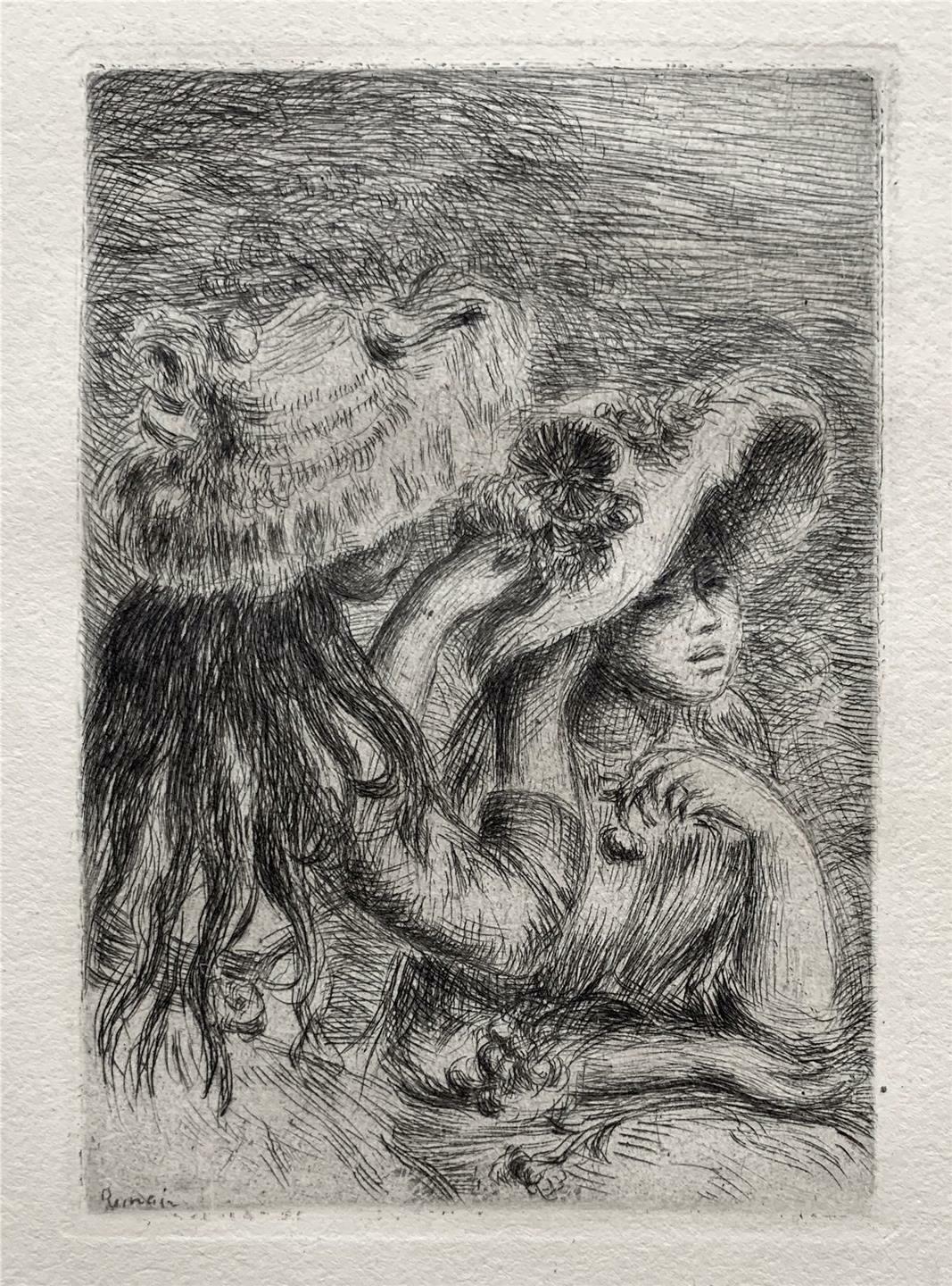 NotesPierre-Auguste Renoir did not make prints until he was almost fifty years old, after he was an established Impressionist painter renowned for his bathers, landscapes, and portraits of the Parisian leisure class. Between about 1890 and 1908 he made approximately sixty prints—roughly half of them etchings and half lithographs—most of which were commissioned for books or albums.