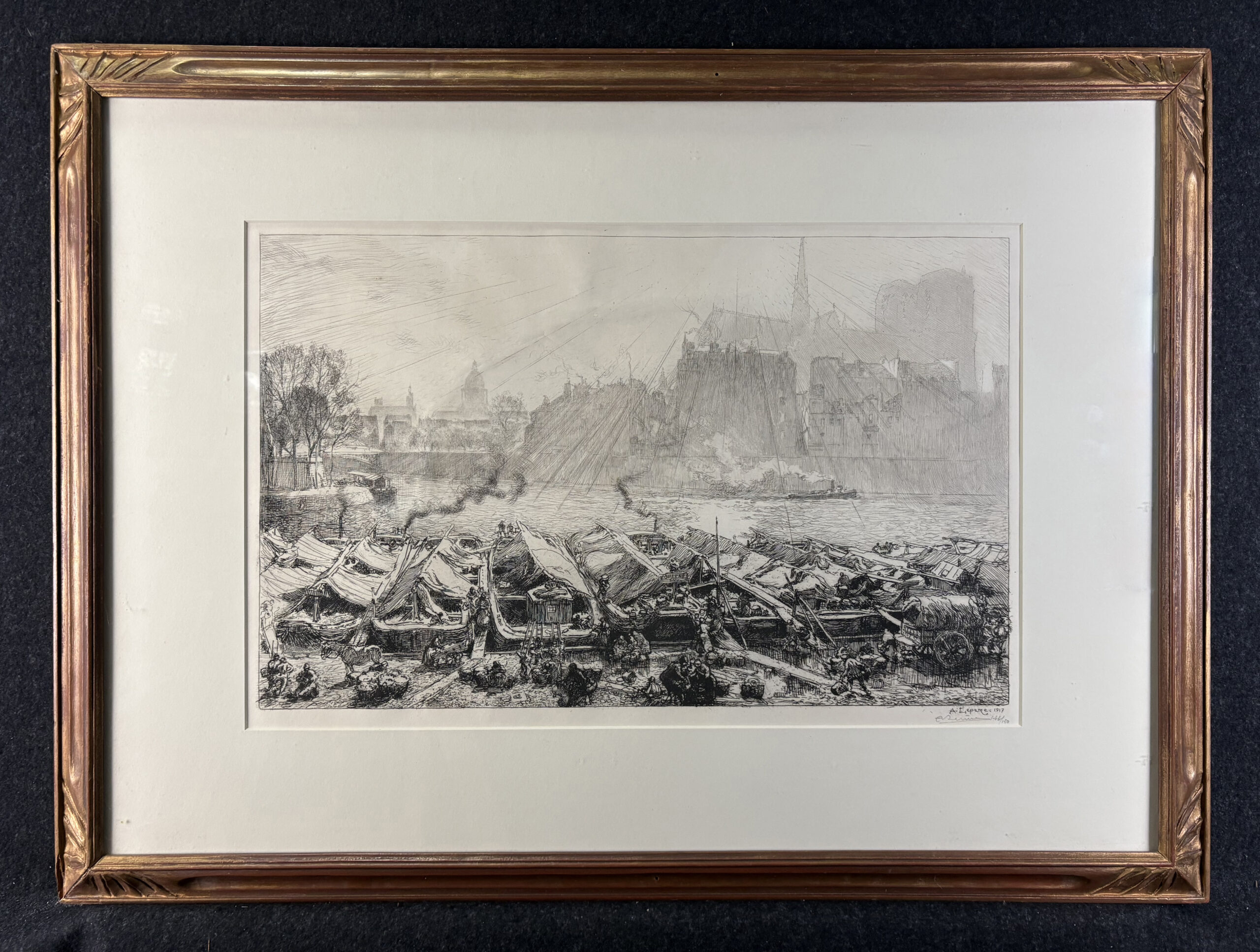 Original etching, signed and dated “1917 in dry point in the plate margin at lower right, signed in pencil and annotated “146/150”, printed in black on fine-grained cream wove paper watermarked “Van Gelder Zonen”, 1.8 – 2.2 inch margins.