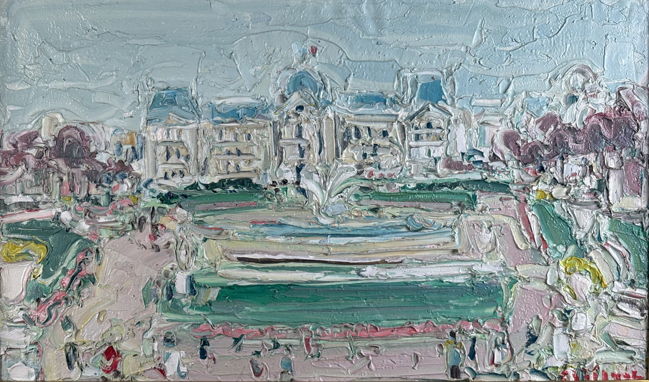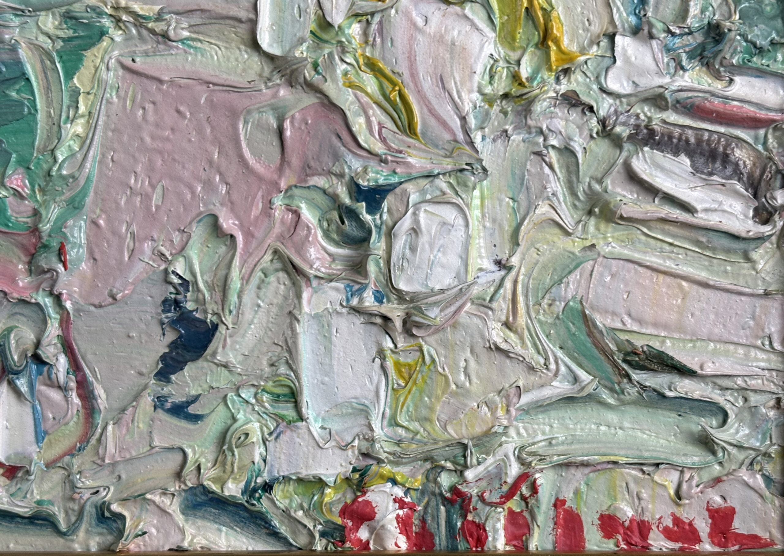 Oil on canvas, signed lower right. Sculptured impasto work.