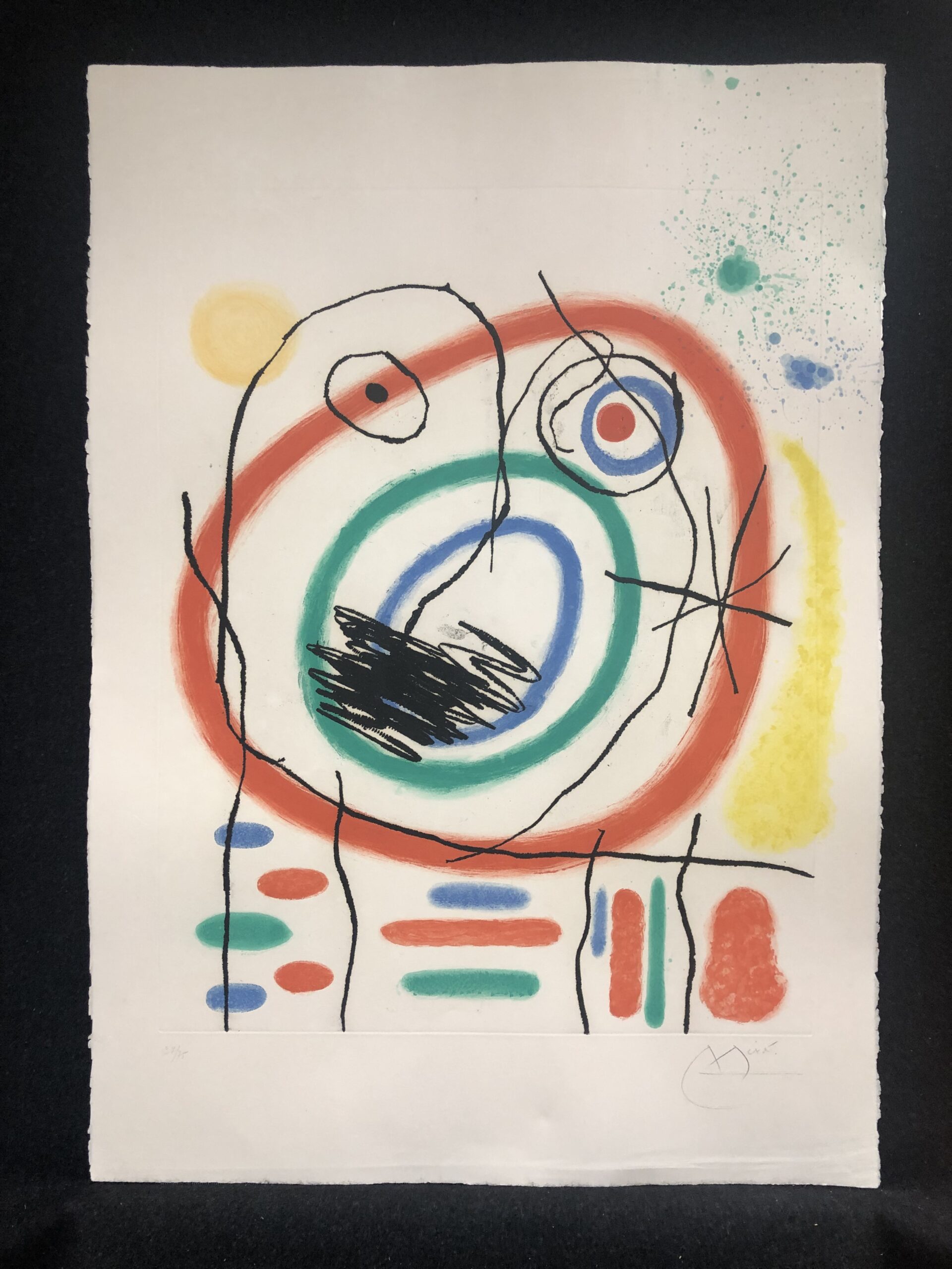 Aquatint etching, signed in pencil and annotated “H.C.”, printed on heavy, felt-finish cream wove paper. Variant of the print issued for the book of poems in French and Spanish by Pablo Neruda (Chile, 1904-1973), printed in different colors from the book edition, printed by Arte Adrien Maeght, Paris and published by Le Vent d’Arles Editeur, Paris, edition 75. Fine condition, full margins. Free shipping to US address.