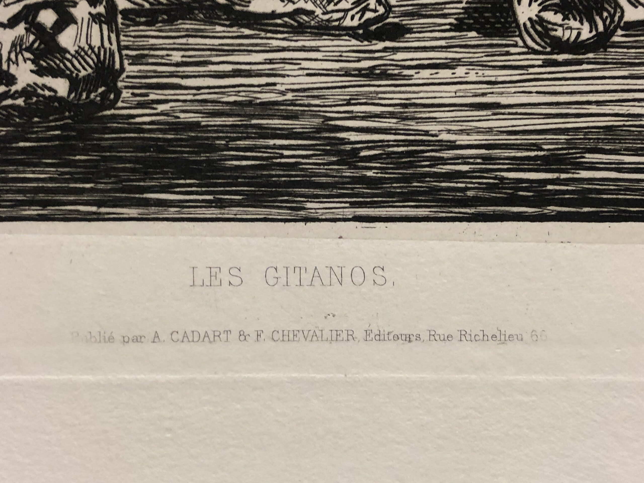 Etching, signed in the plate at lower right, printed in black on heavy, fine-grained, pale-cream wove paper. Published in Eaux-Fortes Modernes, Originales et Inedites by the Societe des Aqua-Fortistes, A. Cadart & Luquet, Eds., Paris, 1862-1863. Mint condition, never saw the light of day, original mounting paper strip still attached, uncut.