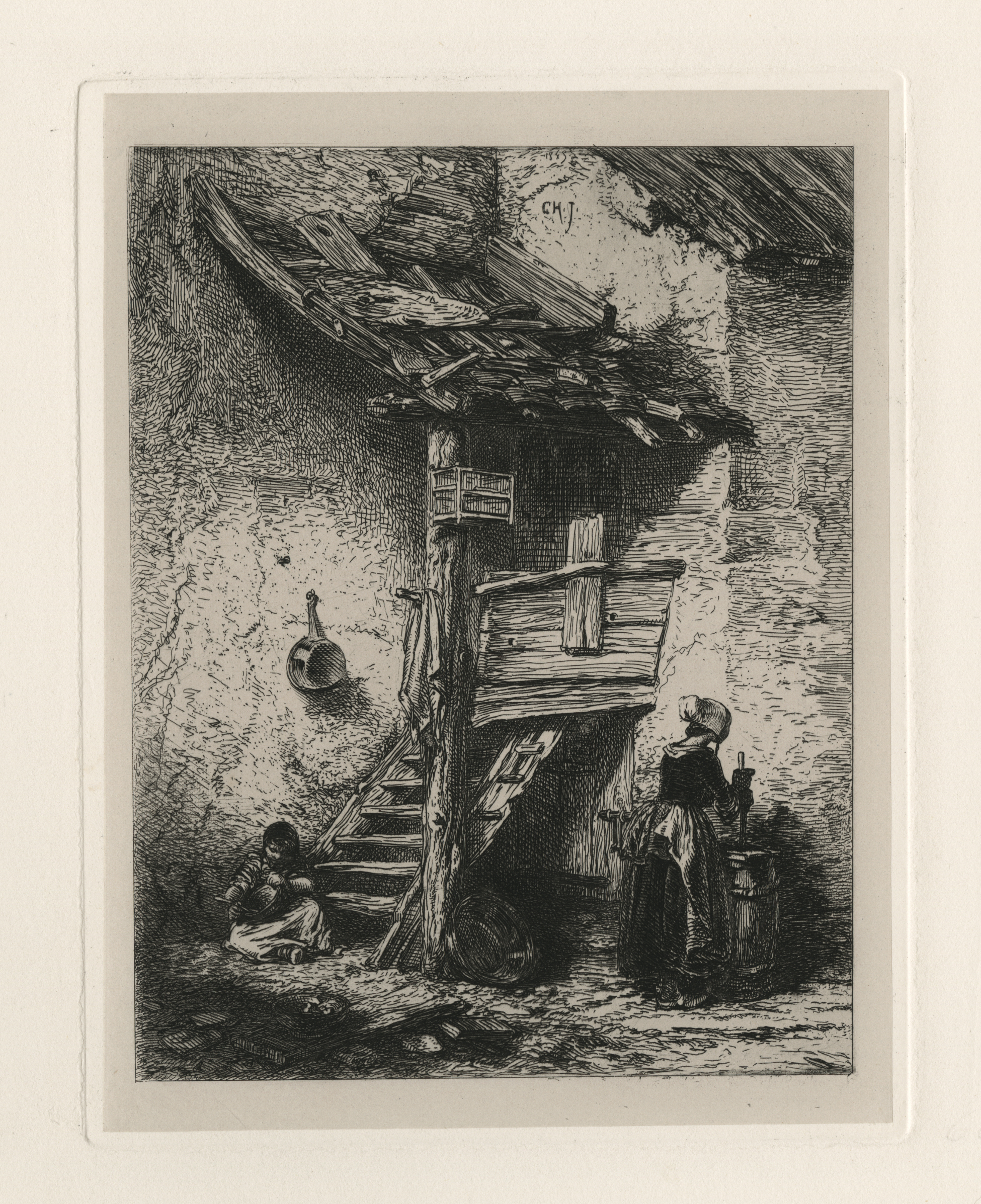 Original etching, signed “Ch J” in the plate upper center, printed on gray chine-colle’ onto heavy, smooth, cream wove paper, wide margins. Printed by Delatre, Paris, 1845.