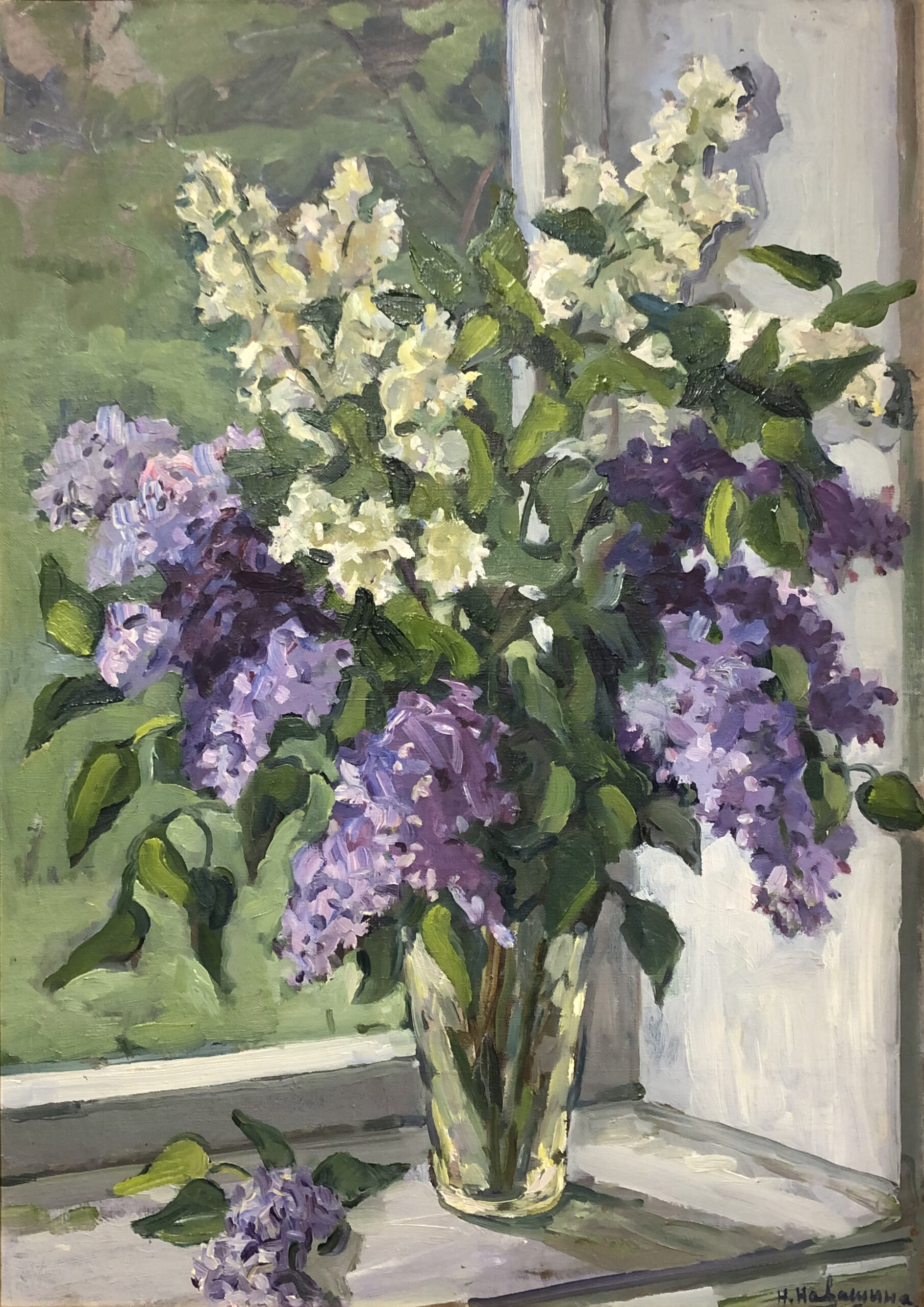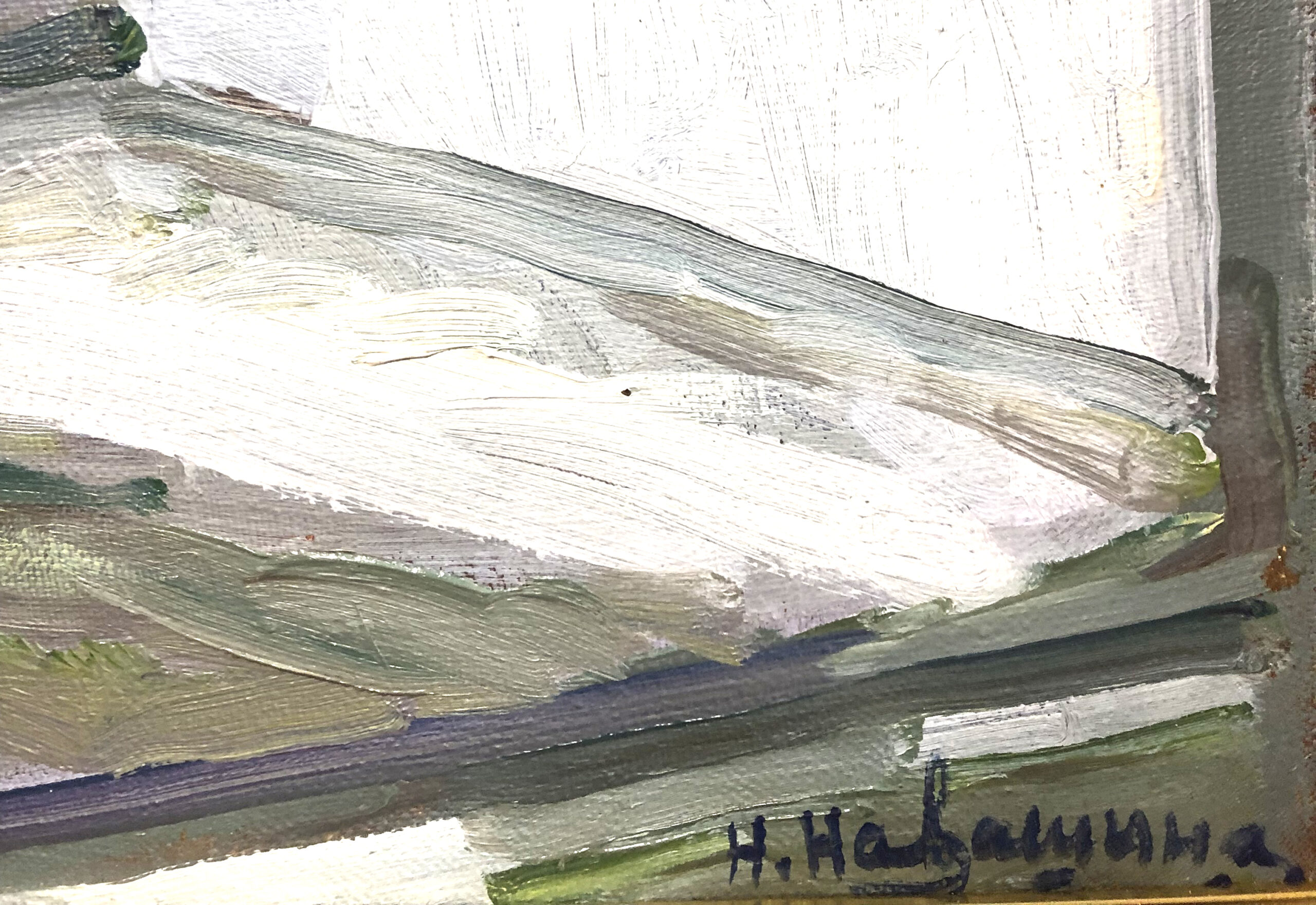 Oil on canvas, signed “N. Navashina” in Cirillic lower right.