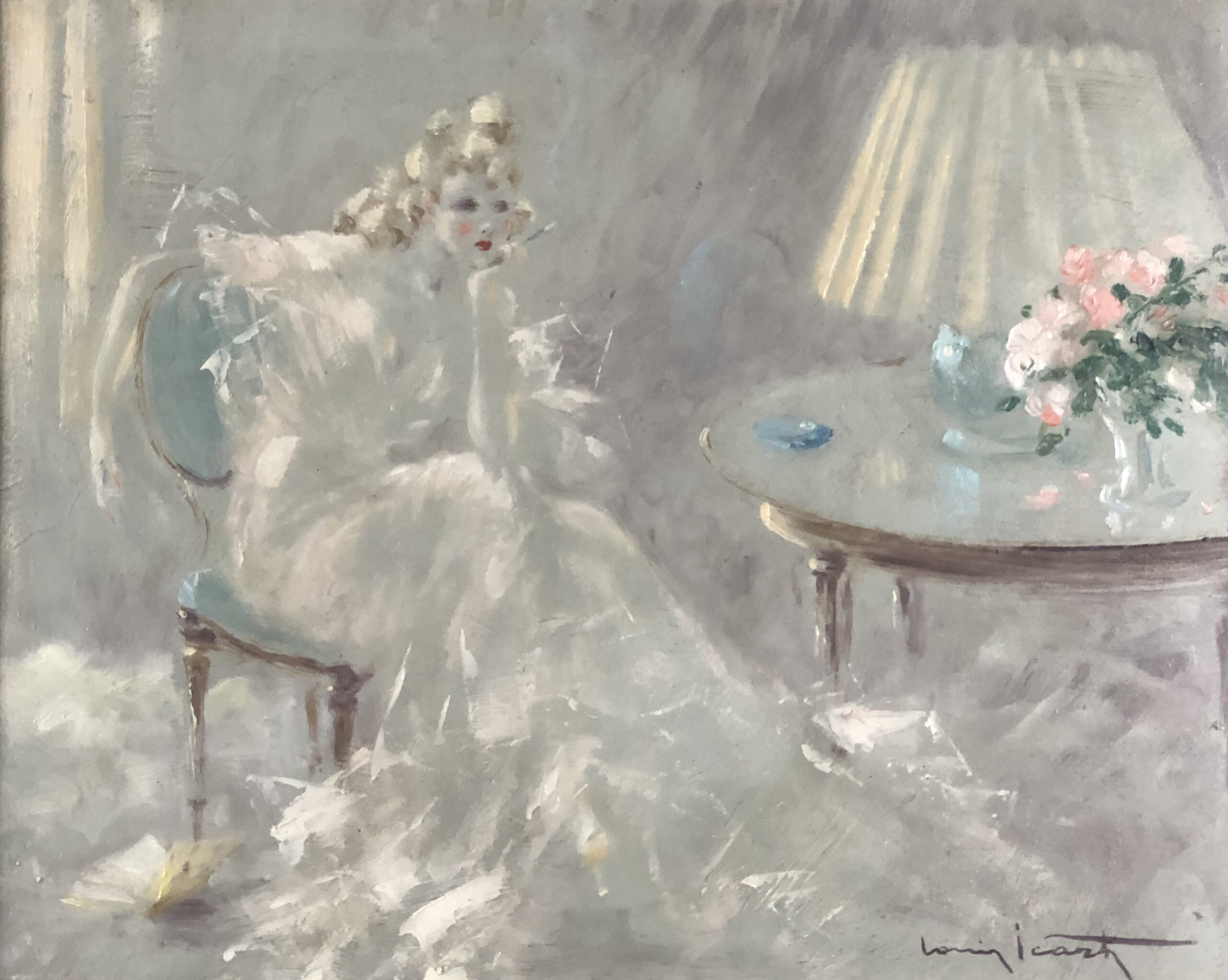 In 1920 he exhibited at the Paris Simonson Gallery, where he received mixed reviews. In 1922, Louis Icart traveled with Fanny to New York City for his first American exhibition, which was first shown in the Belmaison gallery in John Wanamaker's department store and later moved to Wanamakers in Philadelphia. For his fifty oil paintings shown, he received mixed reviews again.
