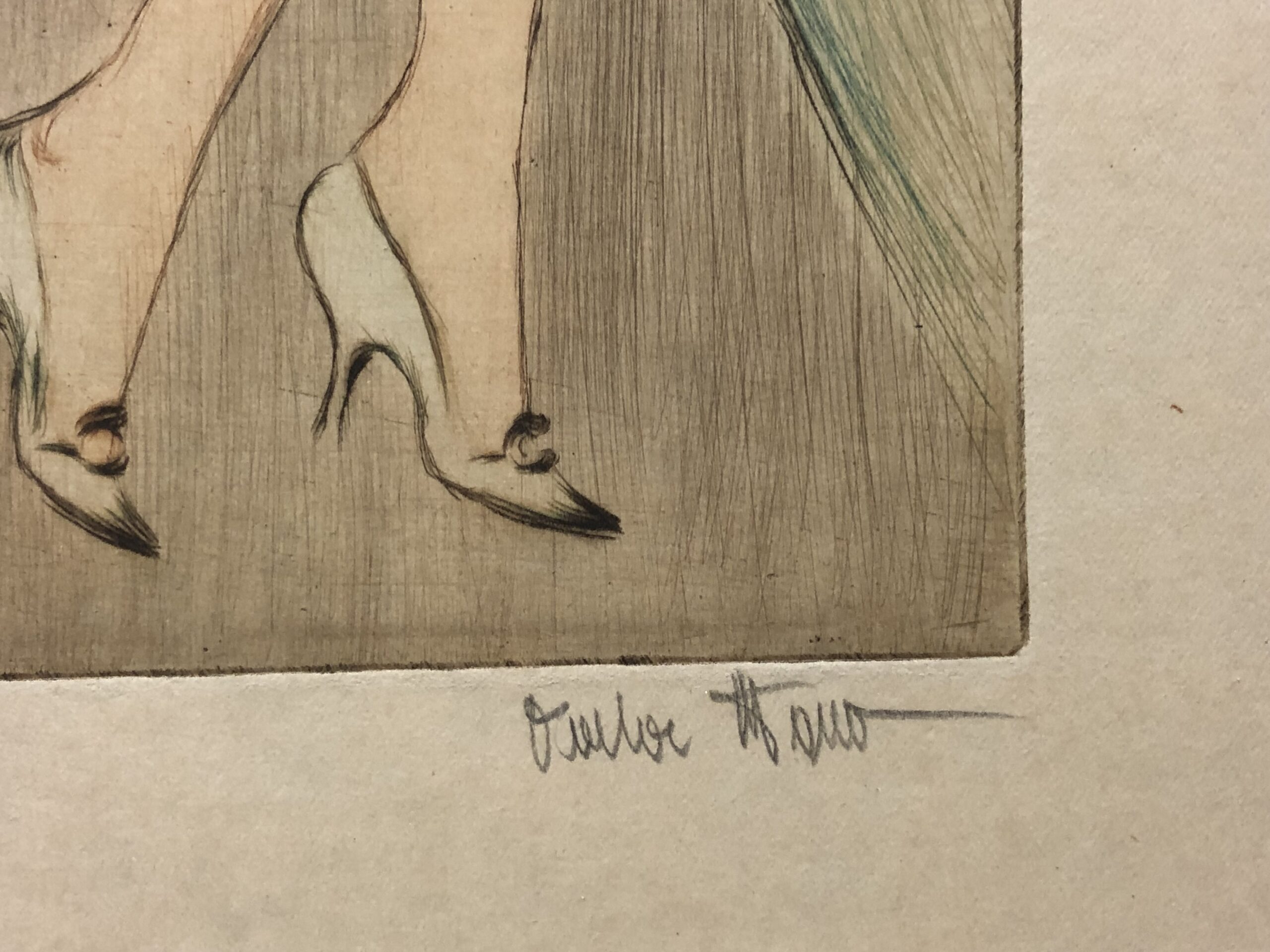 NotesVala Moro was a dancer and a prolific but mysterious artist working in Vienna in the 1920s. Neither her birth place nor the date of her death are known. Her graphic work, which is mainly assigned to Art Deco, includes erotic , also homoerotic, watercolors and etchings, which were also sold in the USA in the 1930s. Among her better known works is the suite of 10 prints under the title "Dance" published by Artur Wolf Verlag Vienna in 1924 published in a small edition of 350. The art collection of Katharina Wolf, Countess Attems, Palais Coburg, liquidated in 1933, contained an extensive collection of works by Moro.