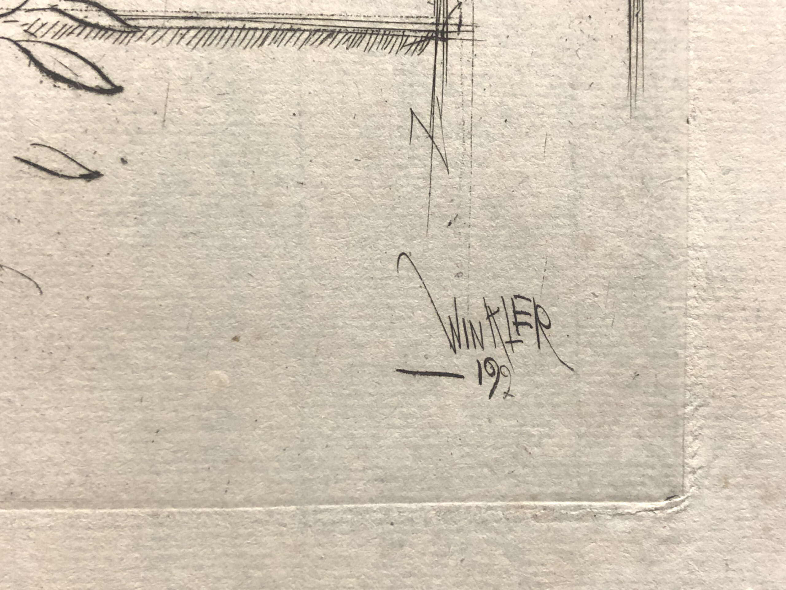 Departing for Europe in 1922, Winkler worked and roamed the countryside from England to France; it would be eight years before he returned to California. He was a member of the Chicago Society of Etchers, the Society of American Graphic Artists, the San Francisco Art Association and an honorary member of the Printmakers Society of California. Winkler was elected an Associate in the National Academy of Design in 1936 and to full Academician in 1951. One of the highest tributes he received was from his friend, John Taylor Arms, who proclaimed Winkler to be the "master of line," the "master of us all."