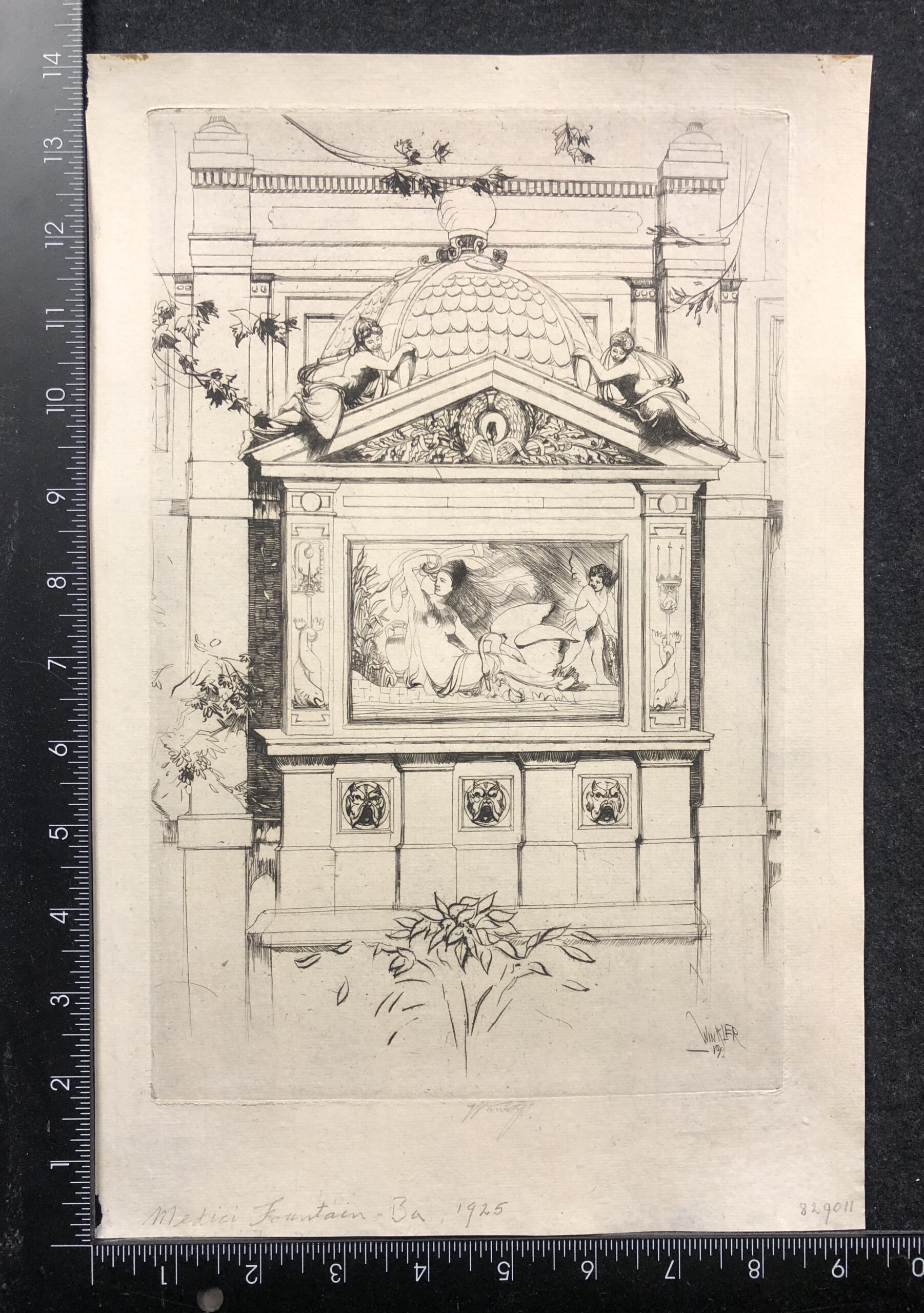 Etching, signed in pencil lower center, printed on thin, antique laid paper. (WA-11)