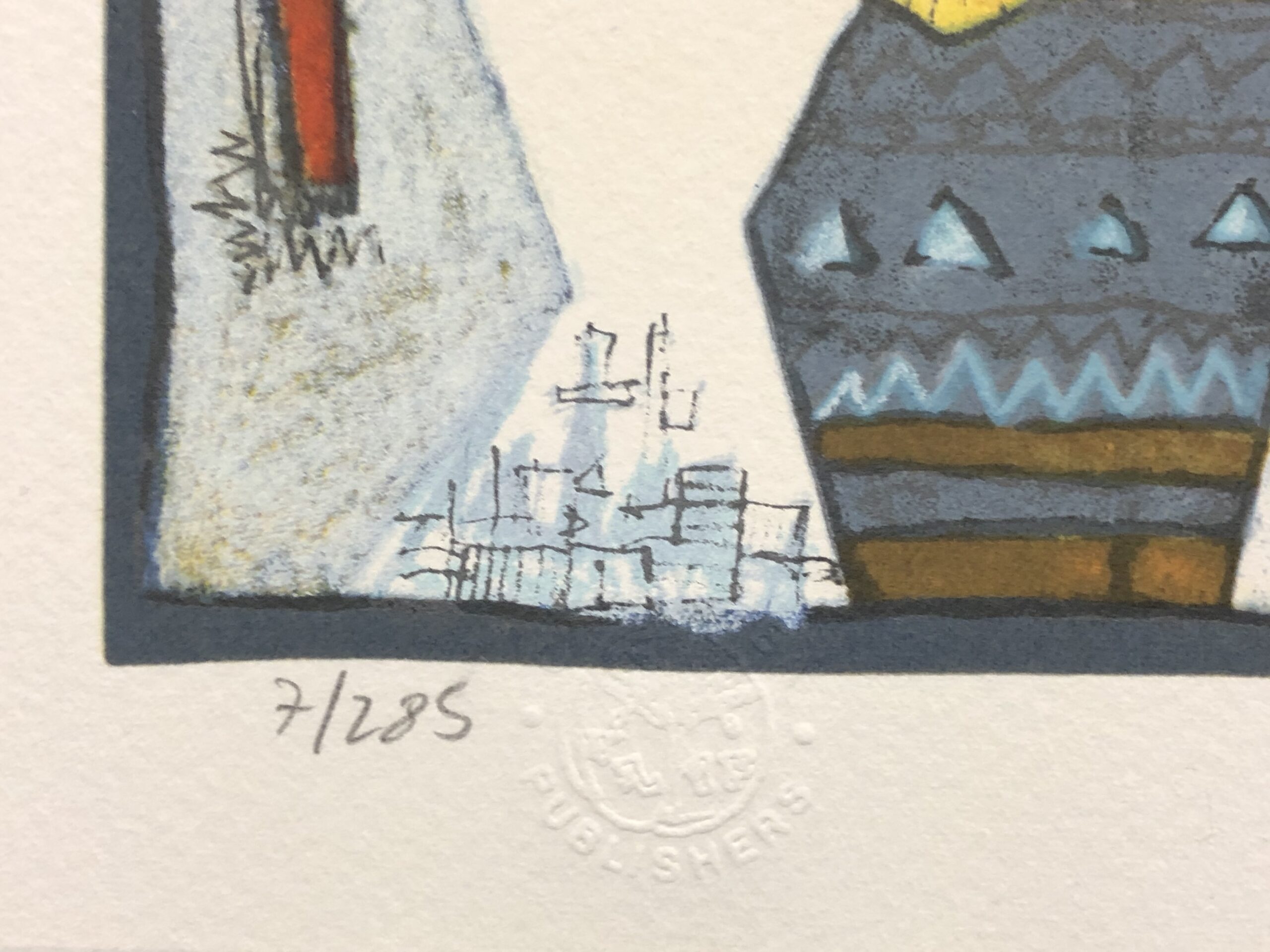 Color lithograph, signed in pencil and annotated “154/350”, printed on heavy, felt-finish, pale cream wove paper. Issued by Caesarea Gallery, Safed, with their embossed seal. Fine condition. Free shipping to US address.