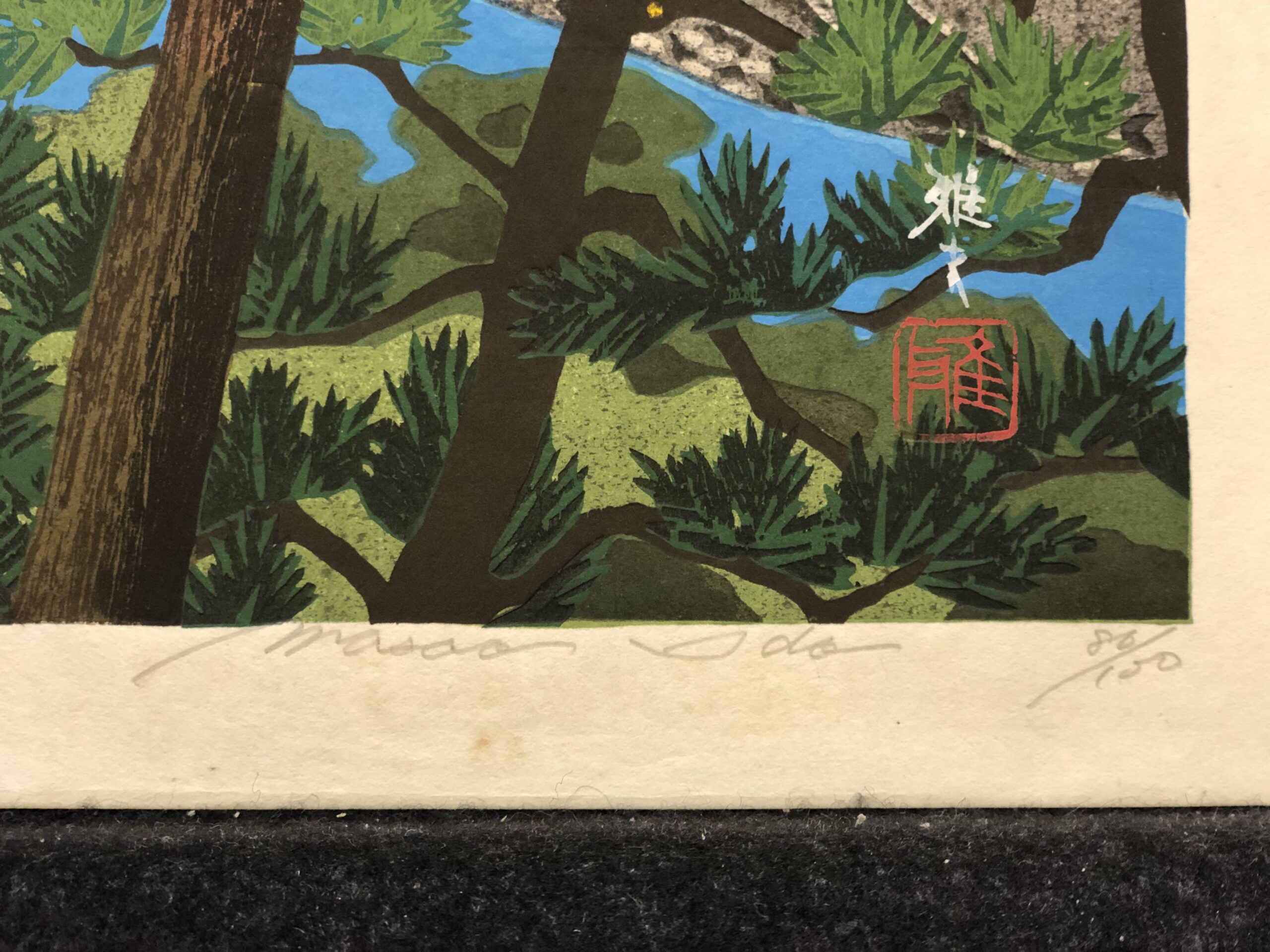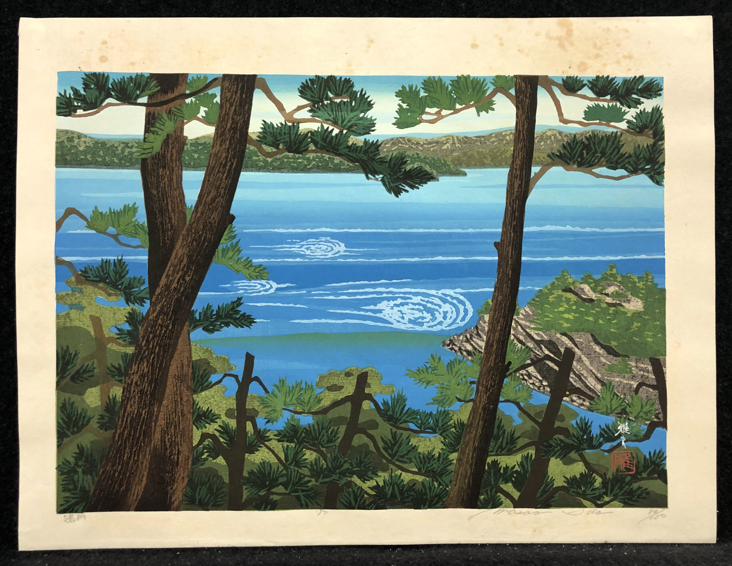 Polychrome woodblock print, signed and dated in pencil and annotated with title (in Kanji) and “86/150”, printed on cream Japan kozo paper. Near fine condition – light foxing. Free shipping to US address.