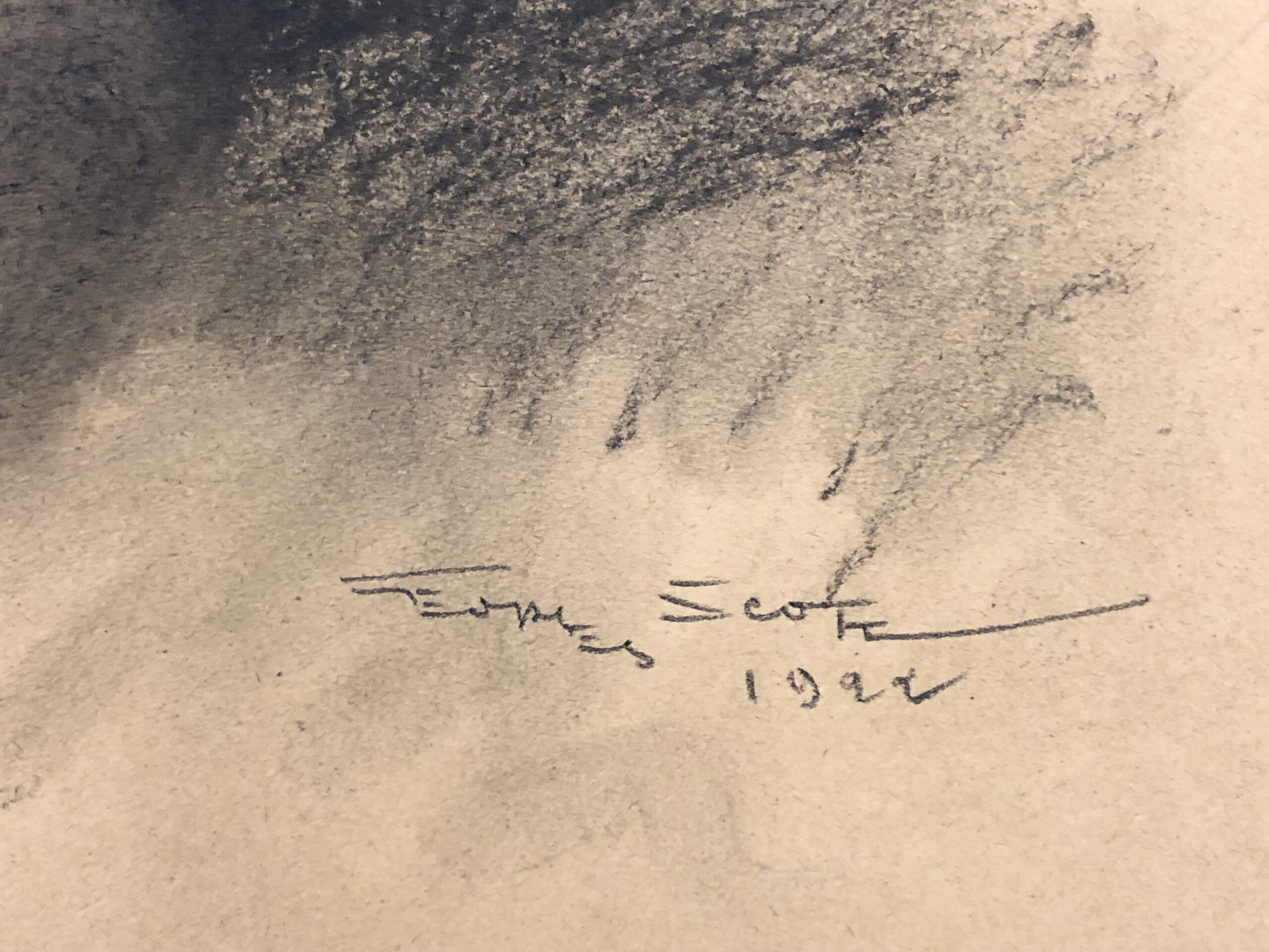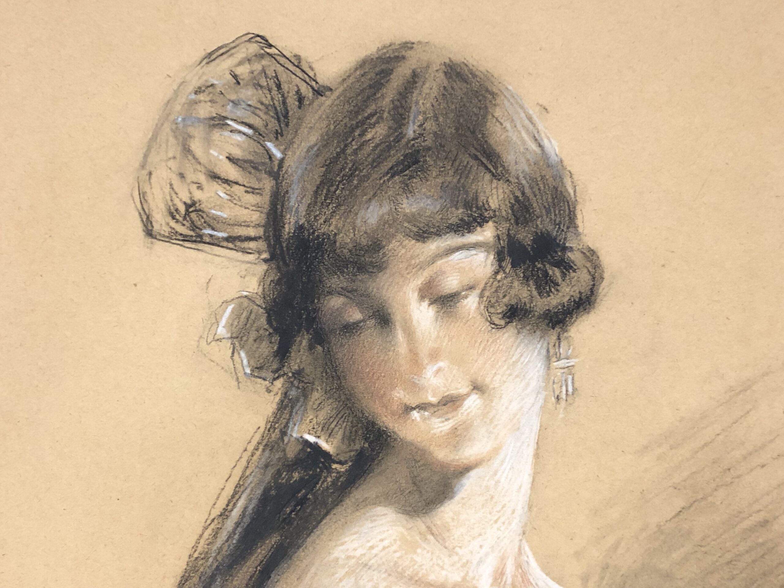 Charcoal and white chalk on wove paper, signed and dated lower right. Portrait of the artist's wife, Nellie Martyl (1884-1953), a French soprano opera singer.
