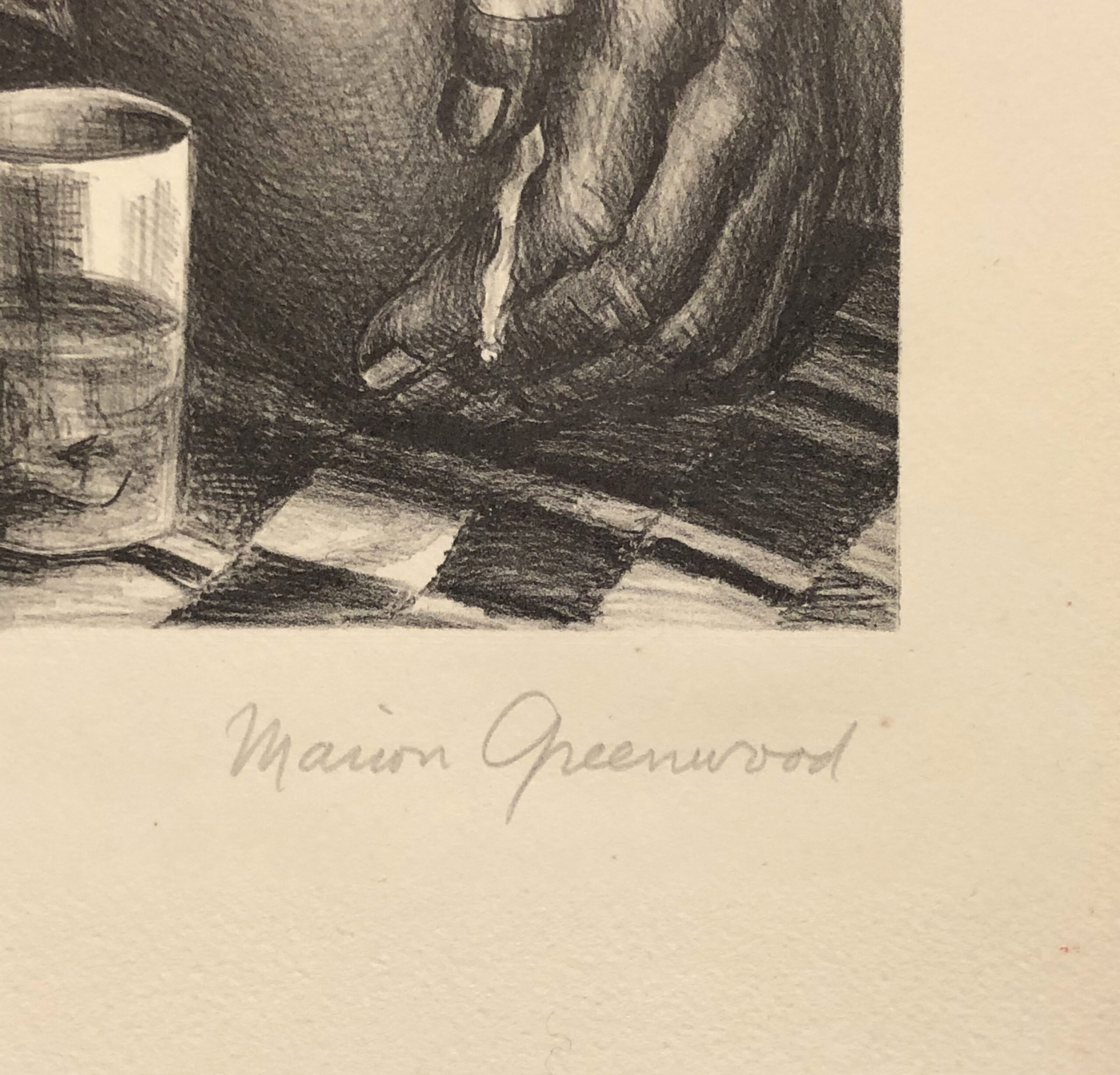 Stone lithograph, signed in pencil and annotated with title, printed on felt-finish, cream wove paper, printed by George Miller. Published by Associated American Artists, New York, NY, 1942, edition 250. Near mint condition, one tiny spec of foxing in the lower margin, paper tape residue. Greenwood’s masterpiece of printmaking. Free shipping to US address.