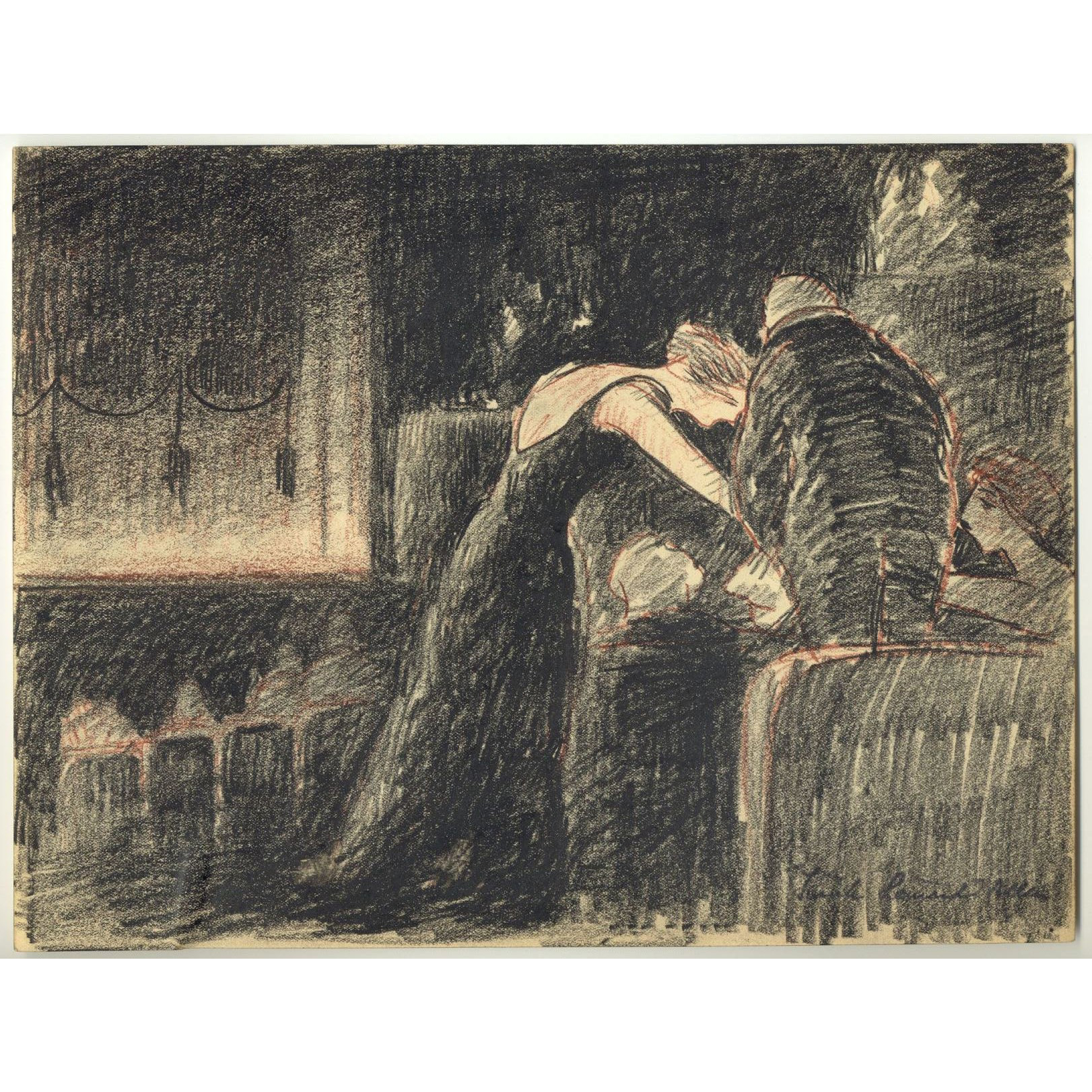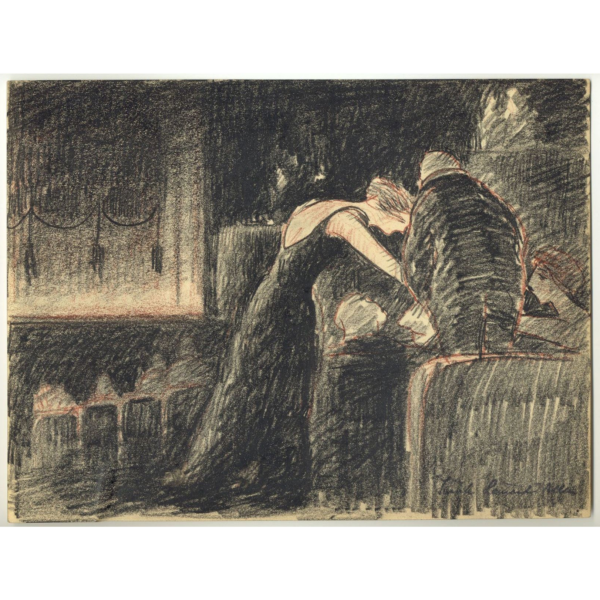 Greasy pastel on paper, signed in the image lower right corner, executed on smooth, cream wove paper.